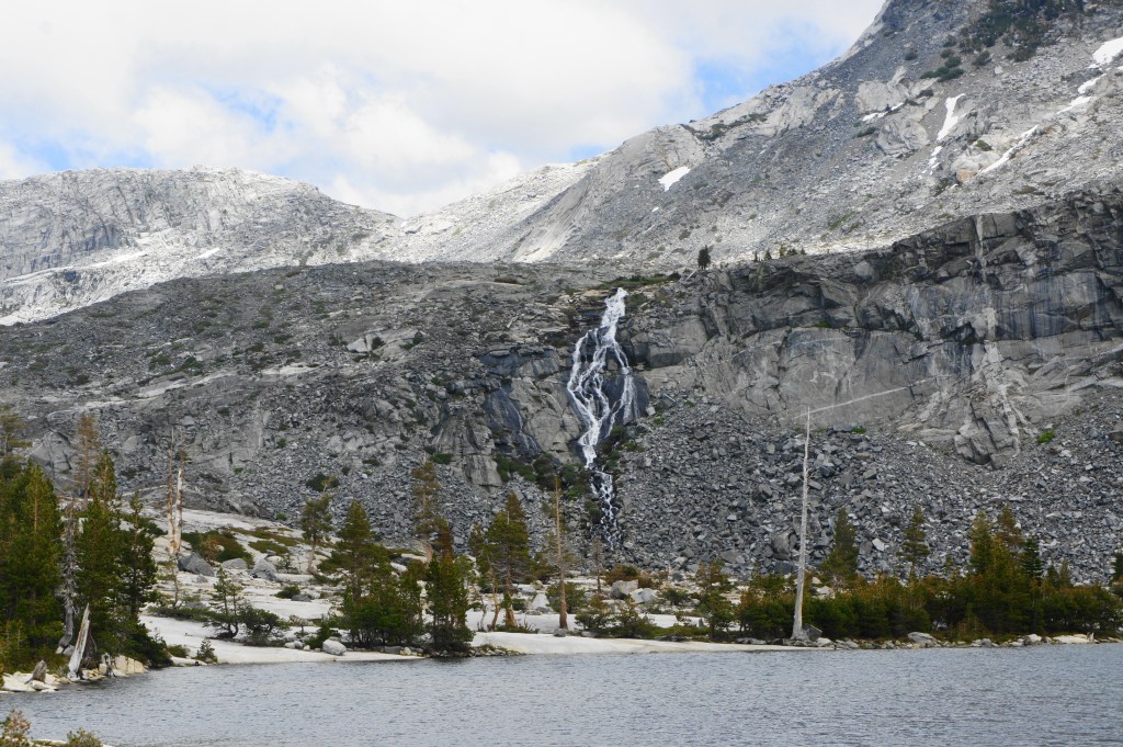 Lower Twin Lake, with waterfall and Crystal Range beyond