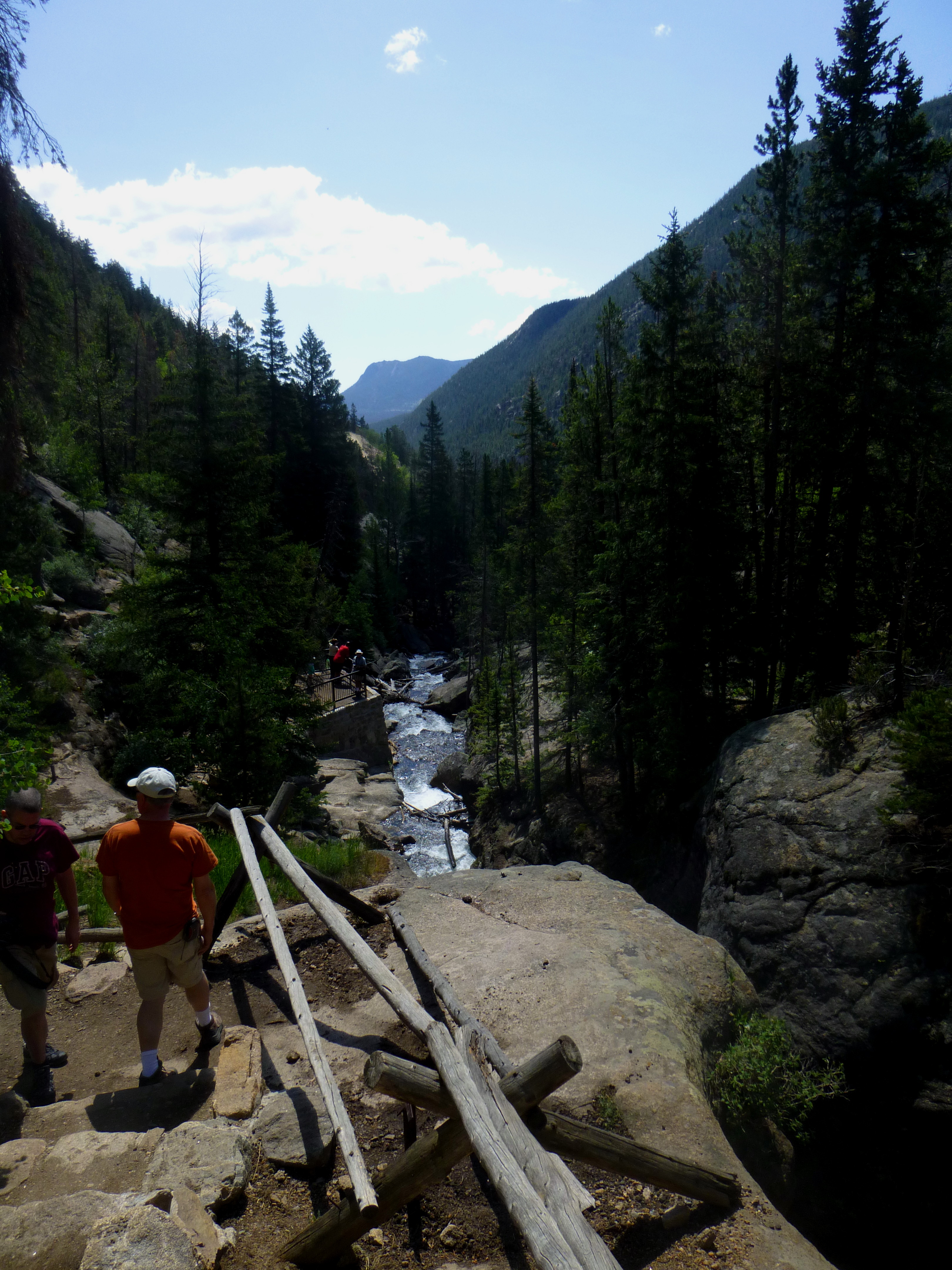 Looking the opposite direction, spend a minute taking in the view of Fall River as it tumbles down toward Endovalley picnic area. Evidently (though I could not find it), there is an unofficial trail that descends down to the false trailhead mentioned above.