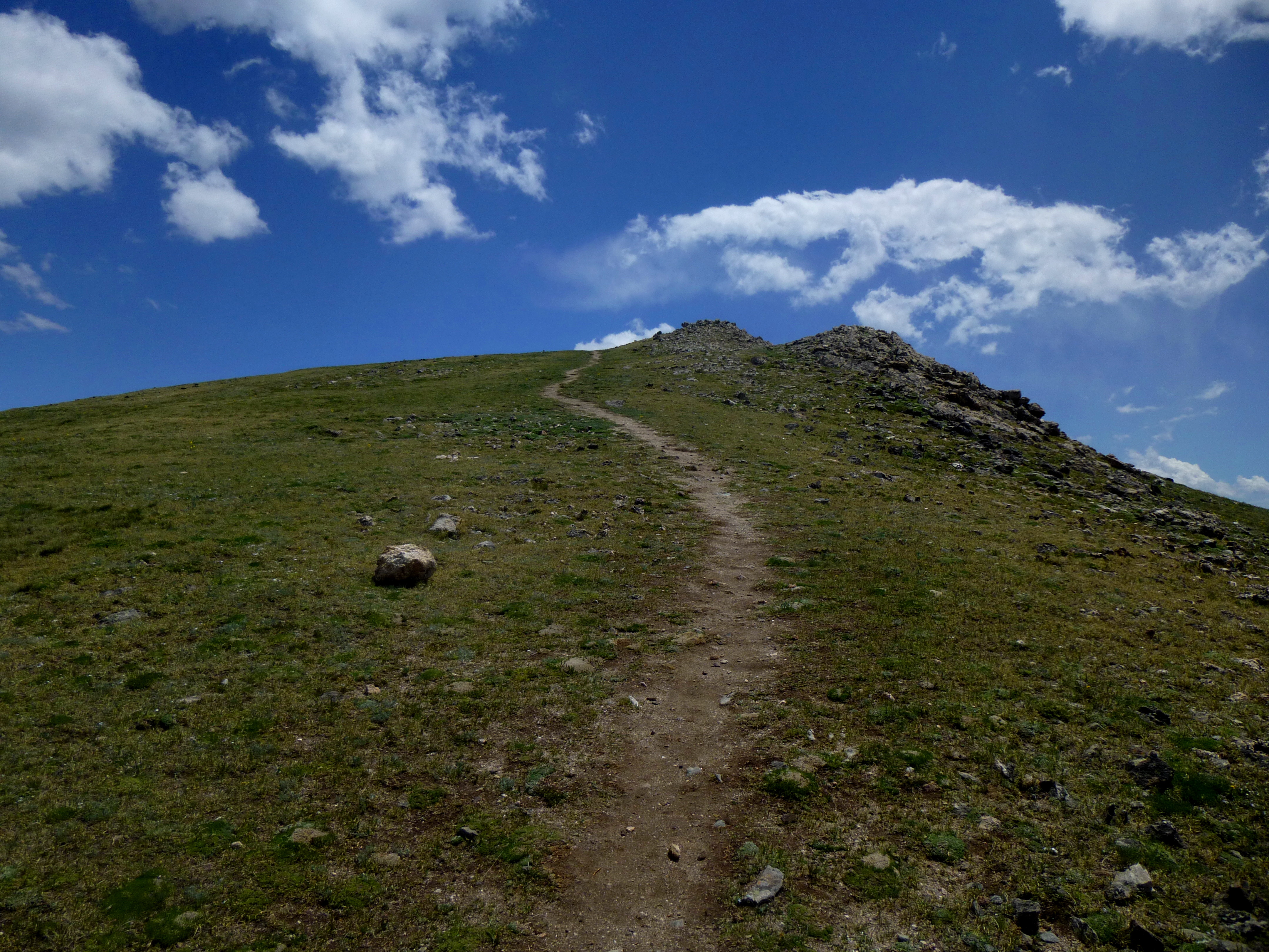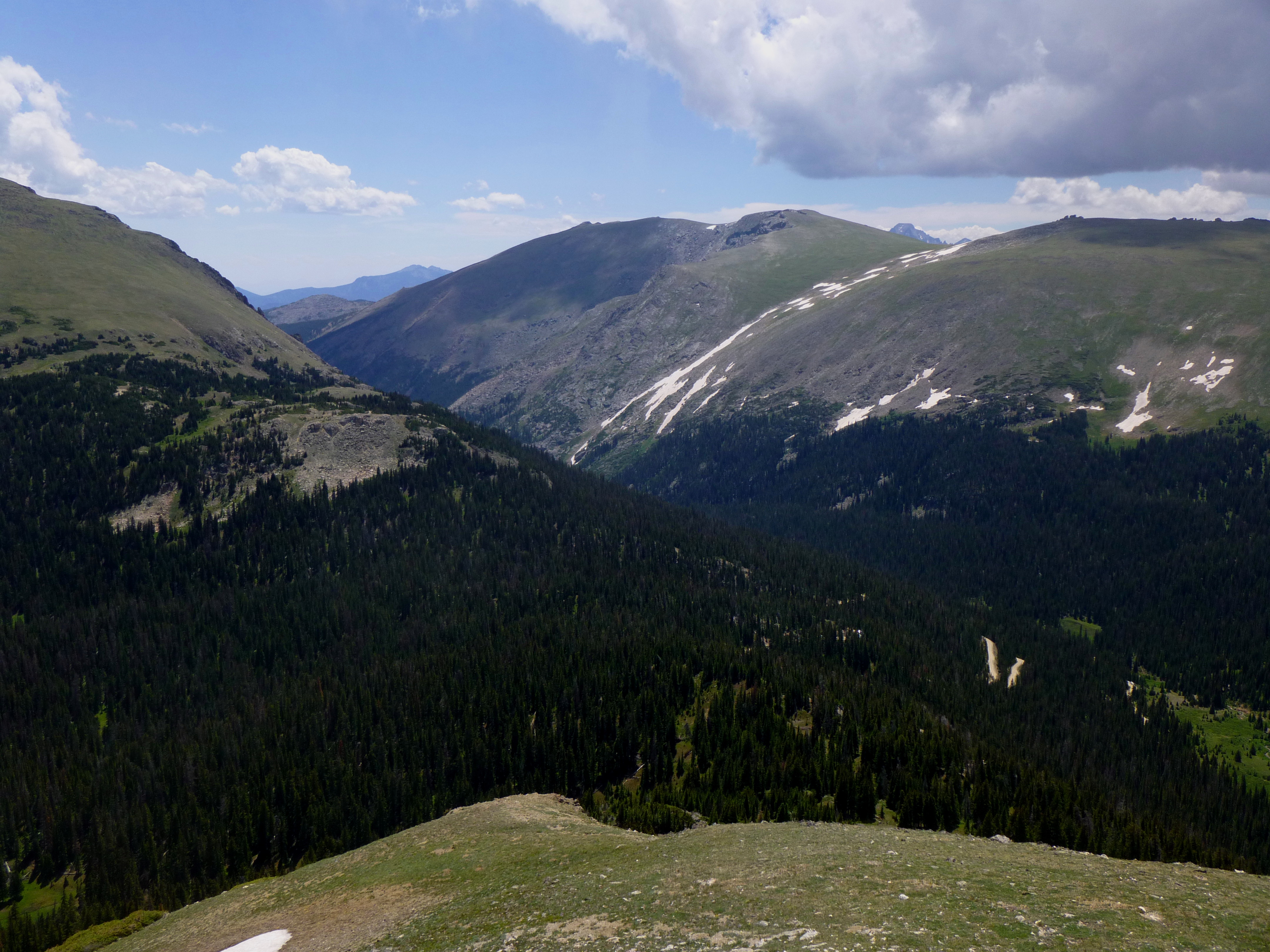 Despite being far less visited than its slightly higher cousin (Alpine Ridge Trail at Alpine VC, 12,005’), Marmot Point (11,909’) is no less spectacular. In fact, because the unpaved, one-way route up Old Fall River Road tends to weed out visitors, the relative solitude of Marmot Point makes this route perhaps a more attractive alternative. The short but steep ascent, in the open sun with no tree cover, endows tremendous 360 degree vistas—with Trail Ridge and Fall River Valley to the south, the Mummy Range to the east, and Cache la Poudre Valley, Iron Mountain, and the Never Summers to the north and west. If looking for a quick summit hike in the park, Marmot Point nicely fits the bill.