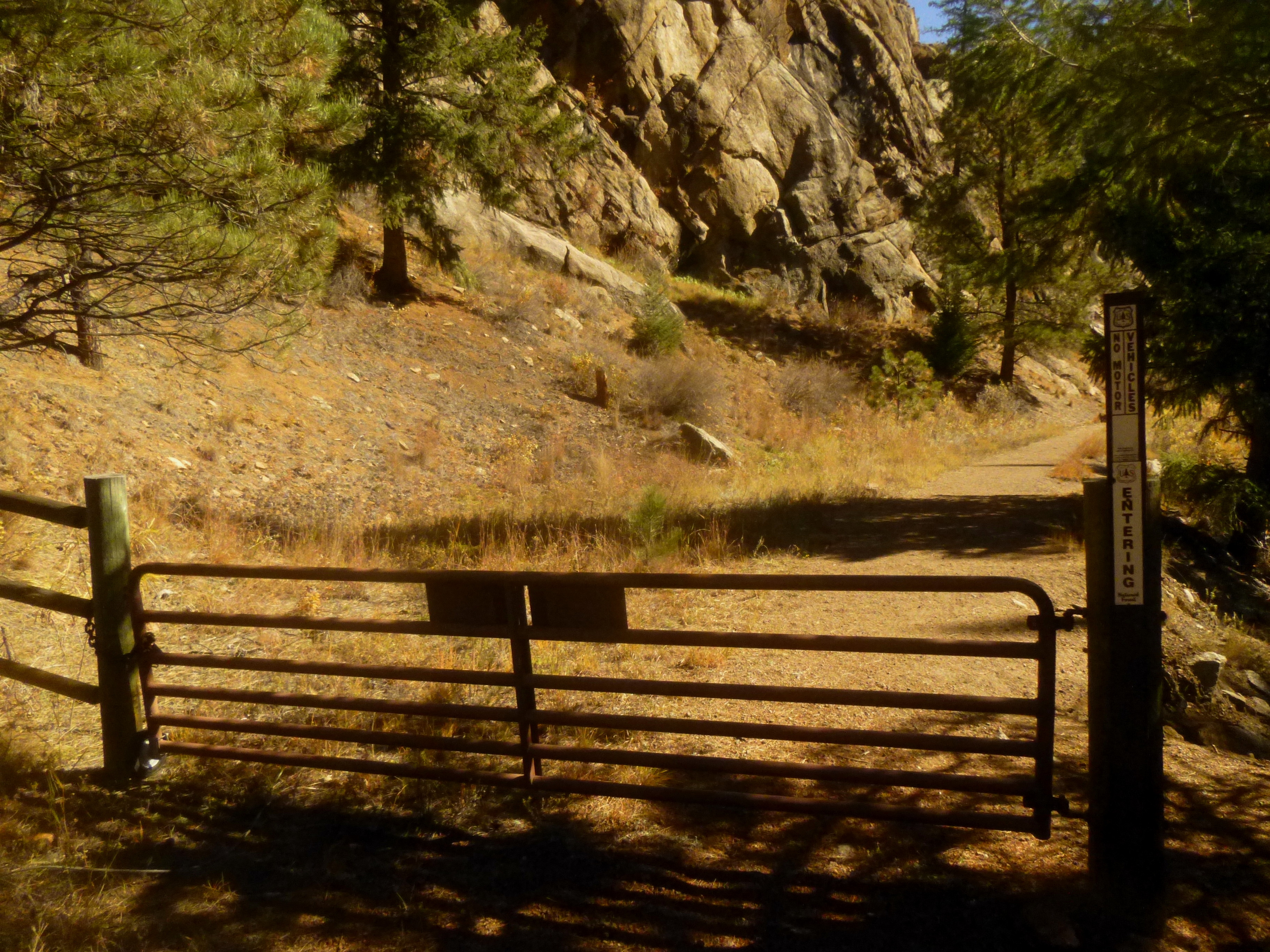 Straight ahead for 50-100 yards lies the end of the park, marked by a rusty metal gate bypassed by hikers on the right. Here you enter neighboring Pike National Forest.