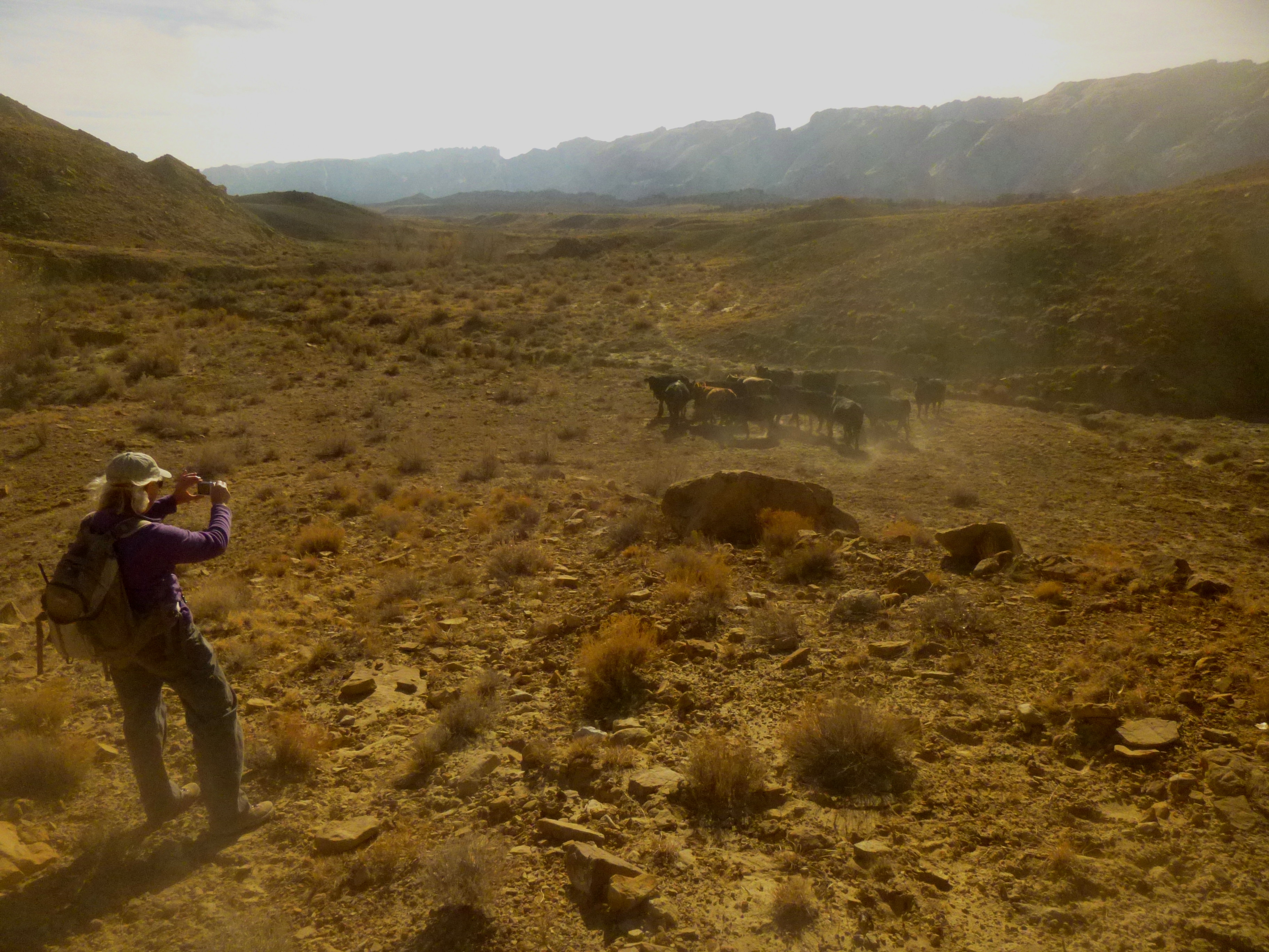Initially, the terrain around Bitter Spring Creek appears extremely dry and unsupportive of life beyond the ubiquitous sagebrush and occasional cactus. But a drop into the primary drainage reveals groves of willows and even cottonwood trees (though some, unfortunately, are not in great health). At a point where the canyon begins to narrow, we found water (likely emanating from the creek’s namesake spring). This supports not only the cows, but a wide array of wildlife: we encountered a family of chukar partridges and a hairy woodpecker immediately upon discovering the stream.