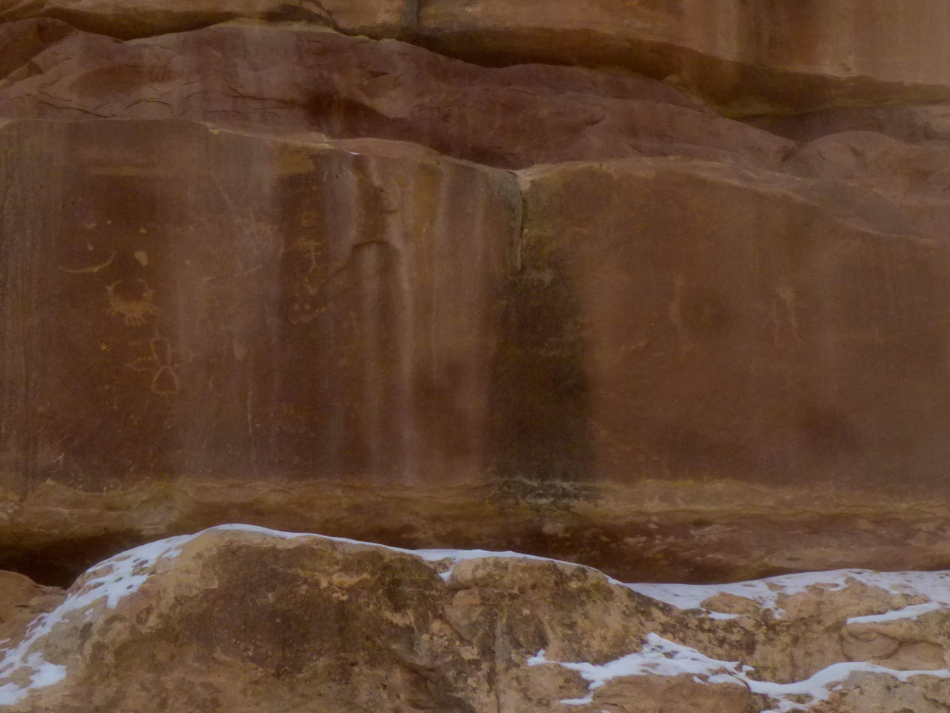 The easily-discernable path (even in snow) begins by cutting straight through pinyon-juniper communities before quickly reaching the first obstacle of the hike, a slickrock ledge surmounted with the assistance of a sturdy wooden ladder. This is the first of several trail aids encountered along the loop.