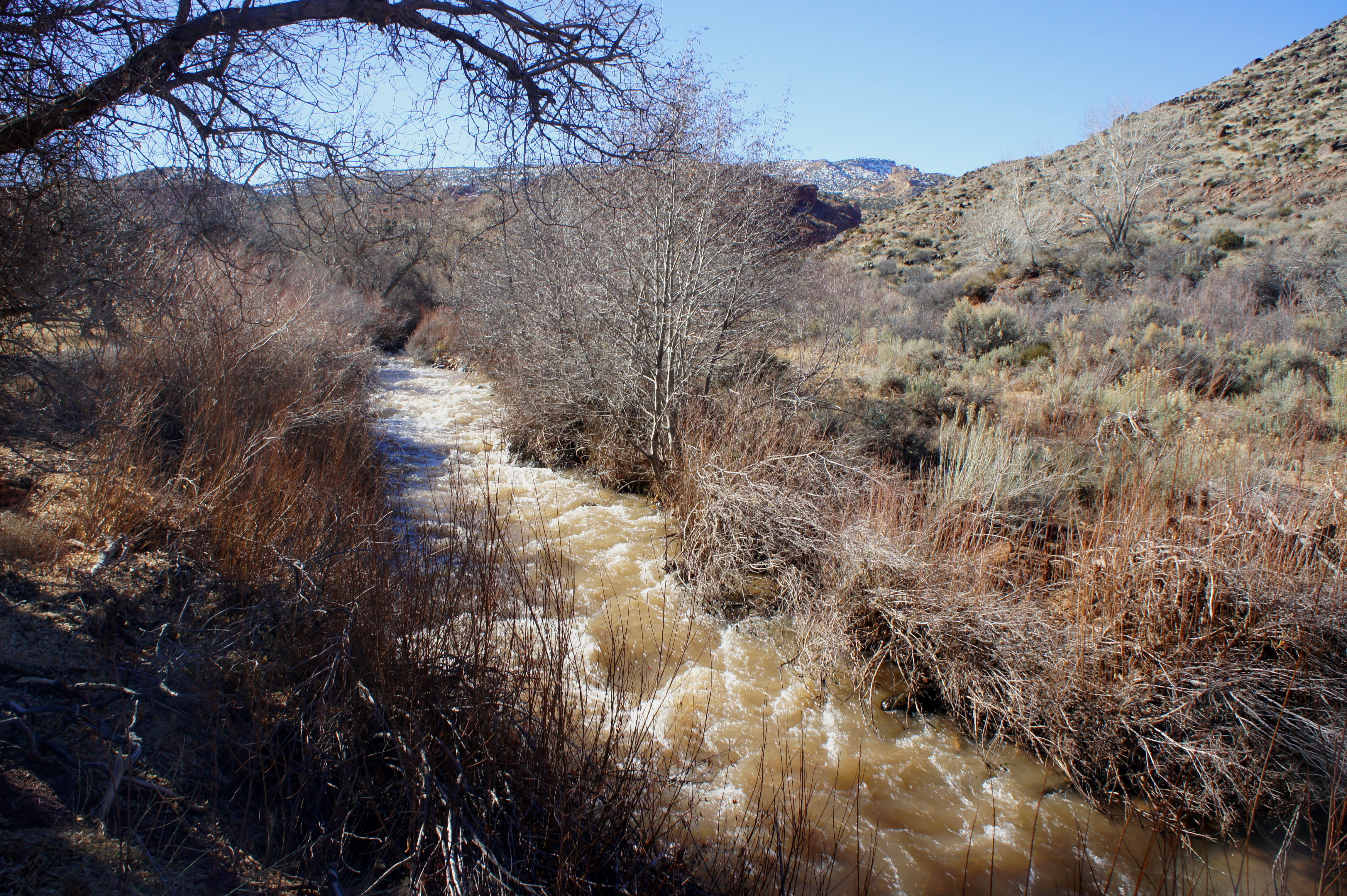 The Fremont River was—and remains—central to the orchards’ survival. Fruita residents developed a series of irrigation ditches to divert water from the river (and nearby Sulphur Creek). A number of these ditches are visible along the early stretches of the hike.