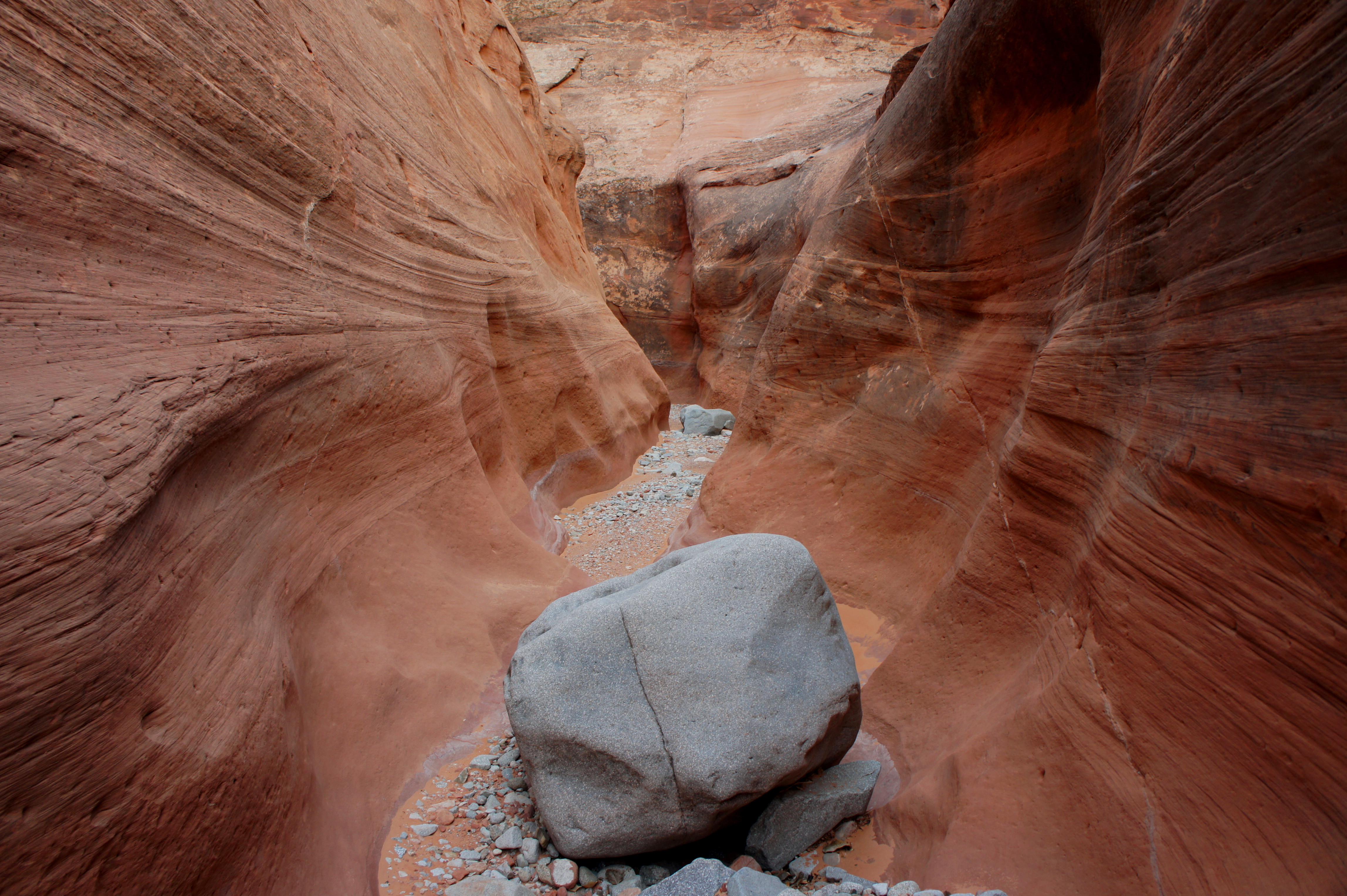 As of February 2015, the narrows contained only four notable obstacles—minor chockstones and short pouroffs—all of which are easily descended. The best narrows—a flat, curvy section about midway through the half-mile stretch—appear smooth, winding, and colorful, not a far cry from the streaked walls of Antelope Canyon, the far more famous slot outside Page, Arizona.