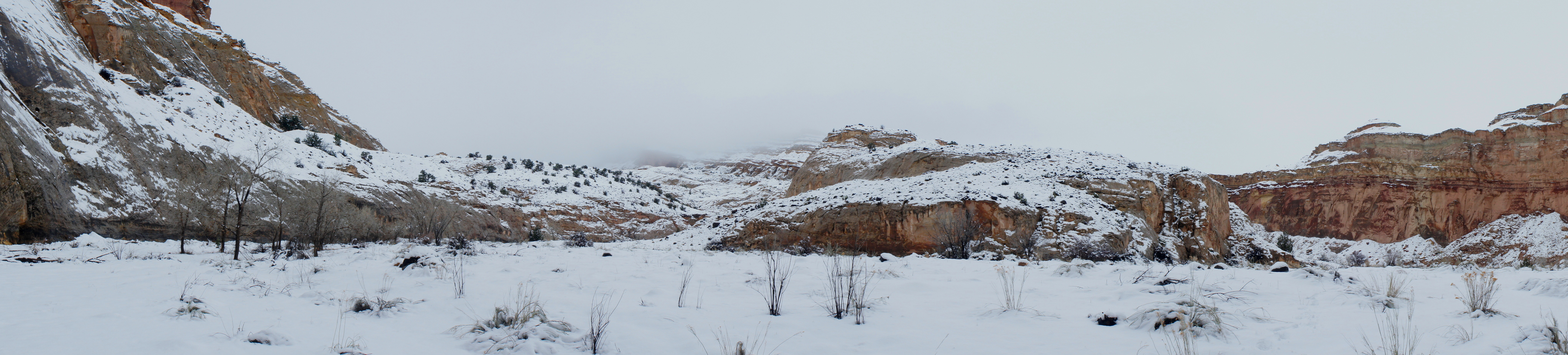 Recording roughly 700,000 visitors per year—many of whom had never heard of the place before stumbling upon it—Capitol Reef National Park is much less touted that in its famous neighbors: Arches, Bryce Canyon, Canyonlands, and Zion. The reward of Capitol Reef? A much higher likelihood of solitude. Visiting during the winter months almost guarantees such a feeling of aloneness—the parking lots empty, the trails deserted. Yet with a sprinkling of snow (Capitol Reef received perhaps 12 inches this winter in total), the Wingate sandstone cliffs and the Kayenta benches of the Waterpocket Fold come alive in photographs, making winter a spectacular time to visit—and to hike.