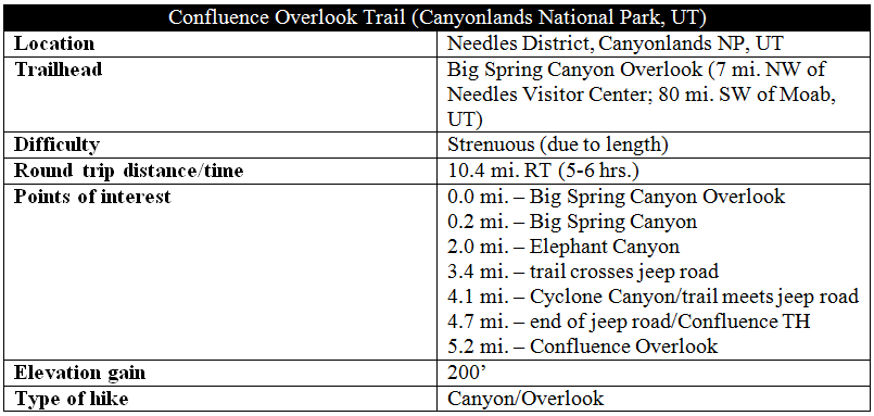 Confluence Overlook Trail information distance Needles Canyonlands