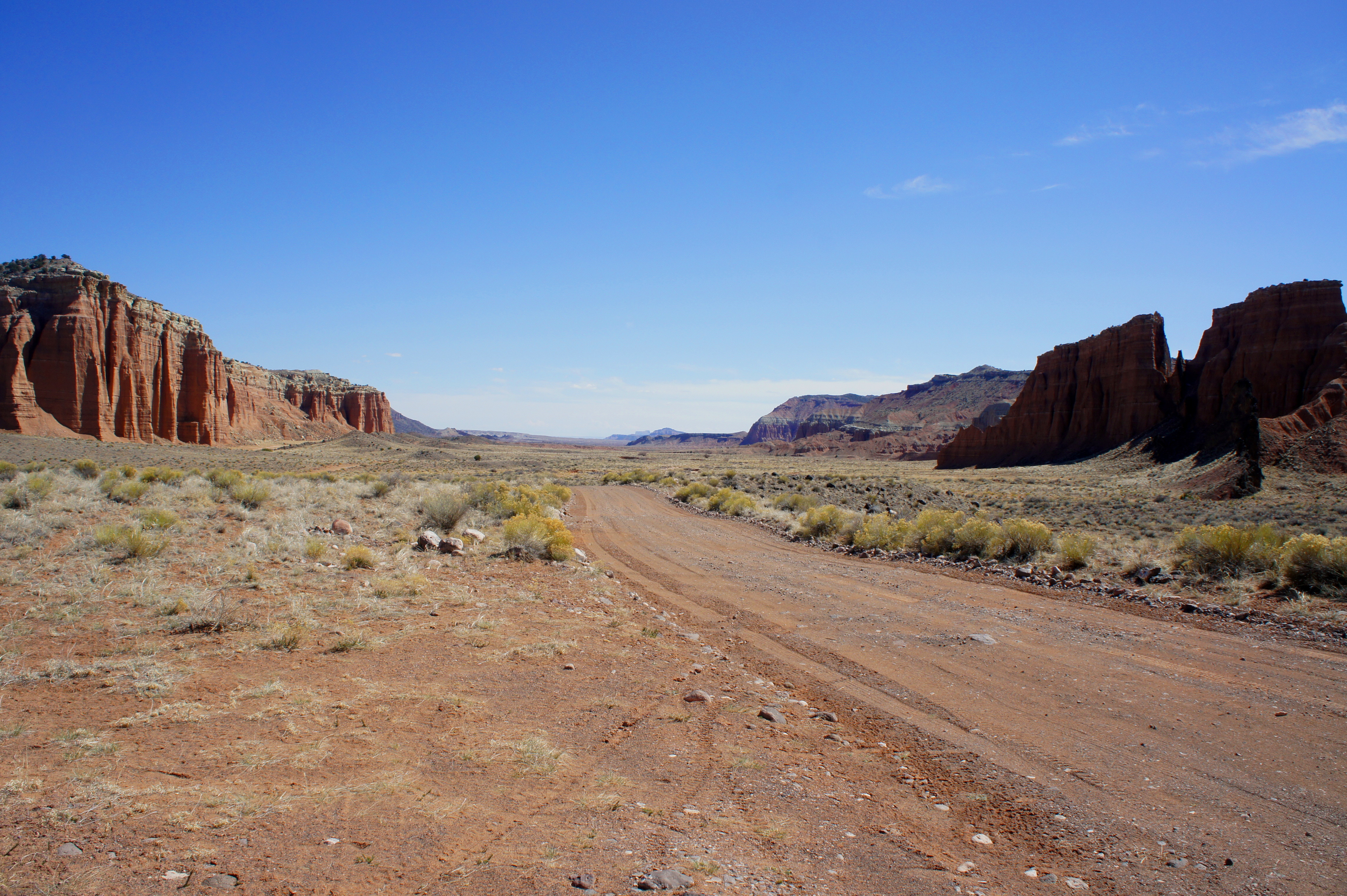 From Highway 24, visitors are advised to complete the loop in a clockwise direction, beginning on the Hartnet Road and returning via the Cathedral Road. The primary reason is the presence of the River Ford, where the Fremont River normally runs around a foot deep—but, with higher water levels, can be enough to turn people around in the event of higher water levels. As the crossing is situated near the start of the Hartnet Road, one could imagine the frustration in driving the lengthy loop in a counterclockwise direction only to find the ford at the end impassable.