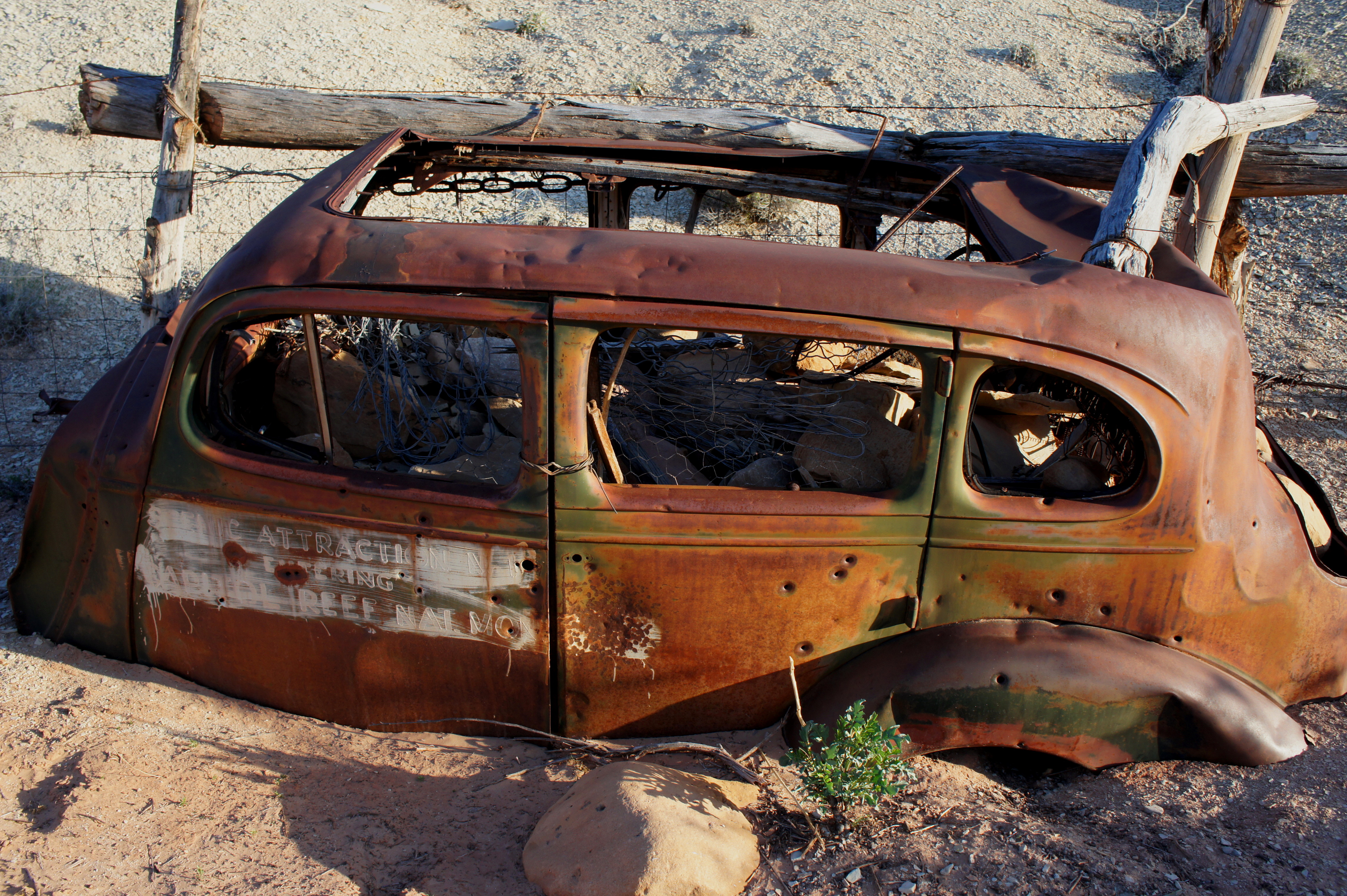Old tourist car at the Capitol Reef park boundary in Capitol Gorge