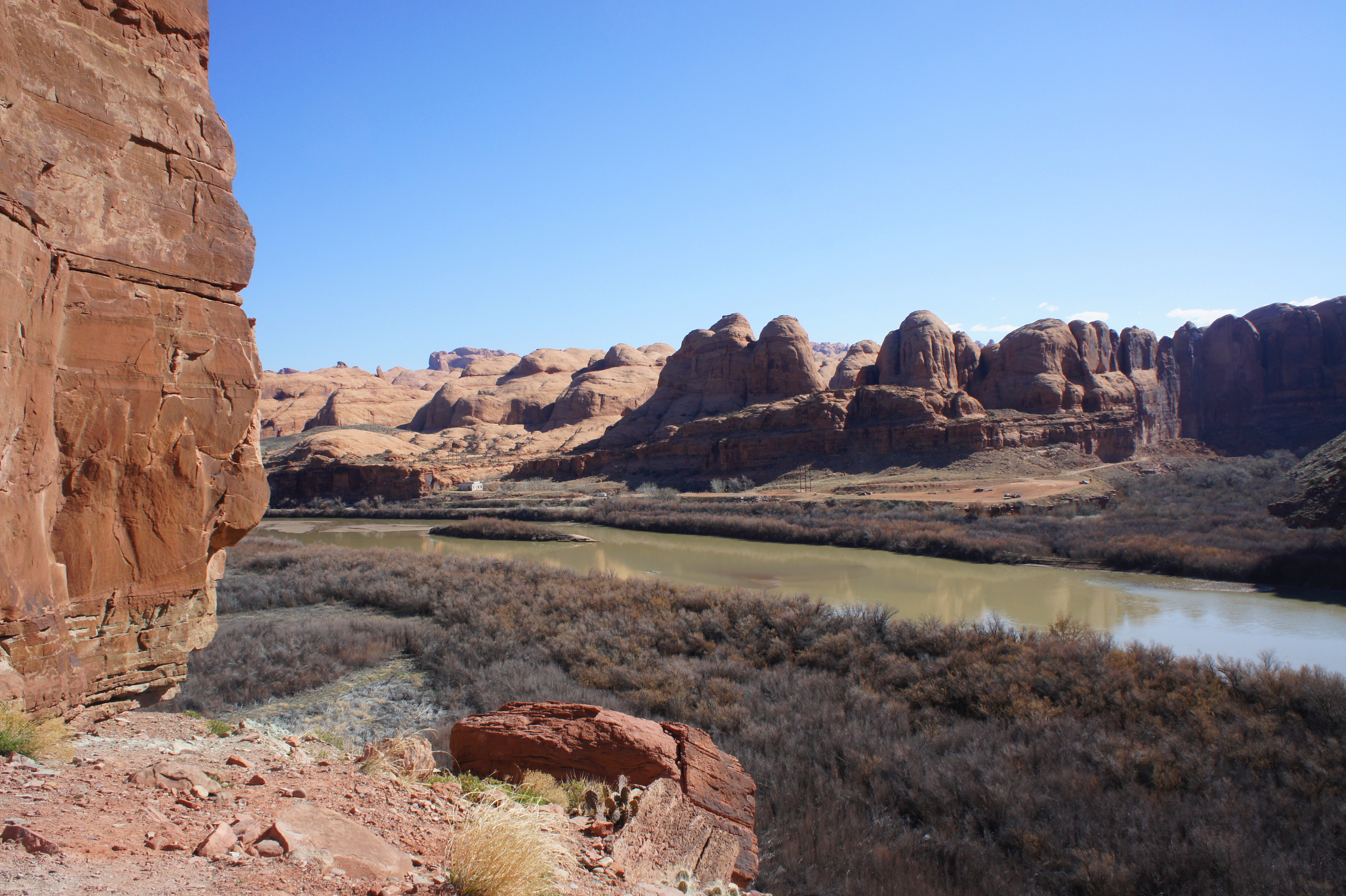 Moab, Utah—the now iconic hangout for hikers, bikers, climbers, and alas, jeep enthusiasts—is situated amid a sea of slickrock and flanked by the Colorado River, the blissful sculptor of many of the American Southwest’s grandest canyons. While millions flock to Moab’s Arches or Canyonlands National Parks each year, lesser-known Highway 279 follows one of the Colorado River’s finest and relatively unspoiled stretches. Utilized mostly by hikers and rock climbers, Route 279—also known as the Potash Road—leaves Highway 191 four miles northwest of Moab and provides access a number of lesser-known gems, including the Corona Arch Trail, world-class petroglyphs, and even a set of dinosaur tracks. Ambitious drivers with a sturdy set of wheels can venture beyond the end of the pavement and, weather permitting, enter Canyonlands’ Island in the Sky District via the backdoor. All the while, the Colorado—mostly still and serene—provides the perfect backdrop for a day in slickrock nation.