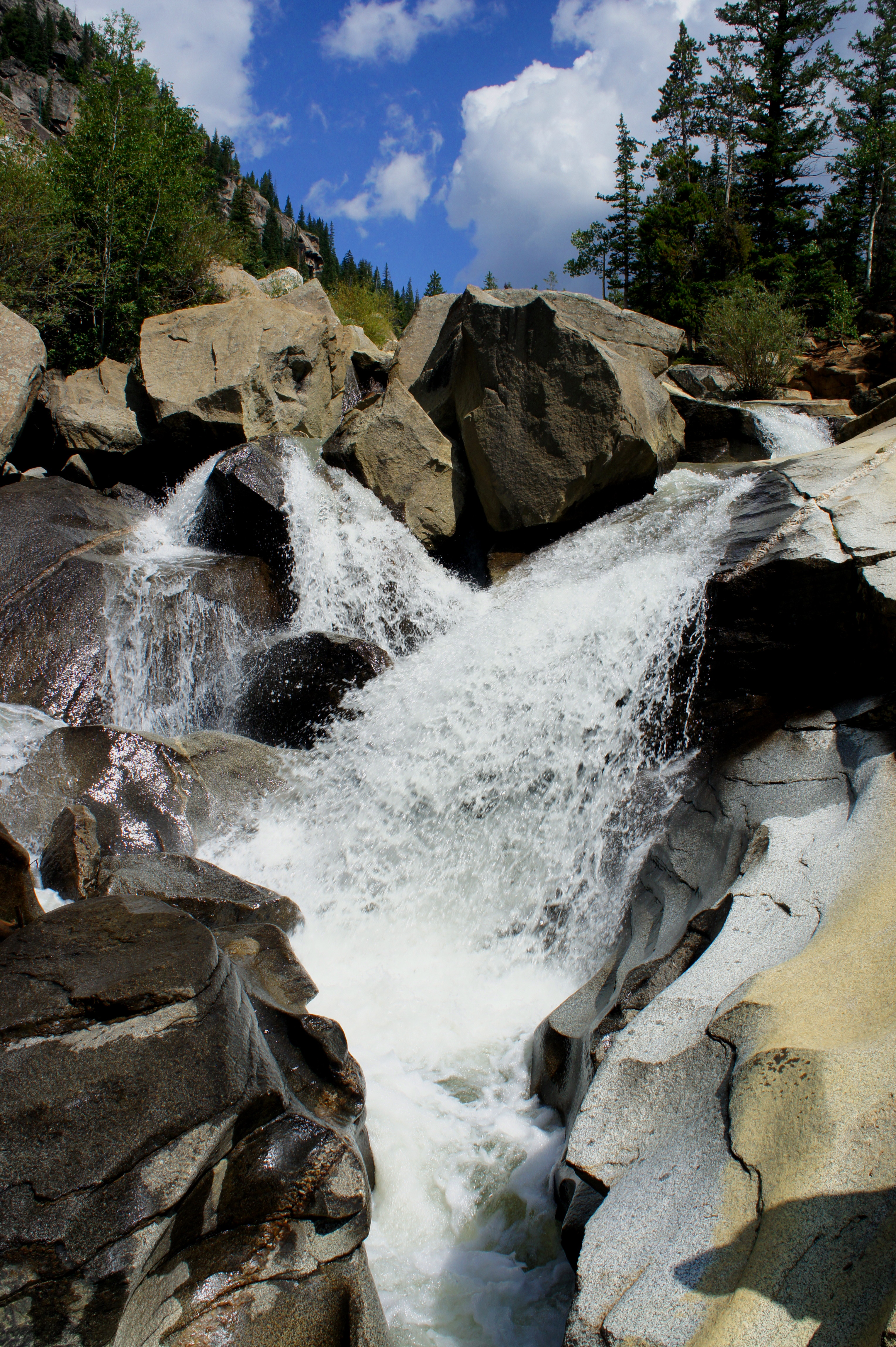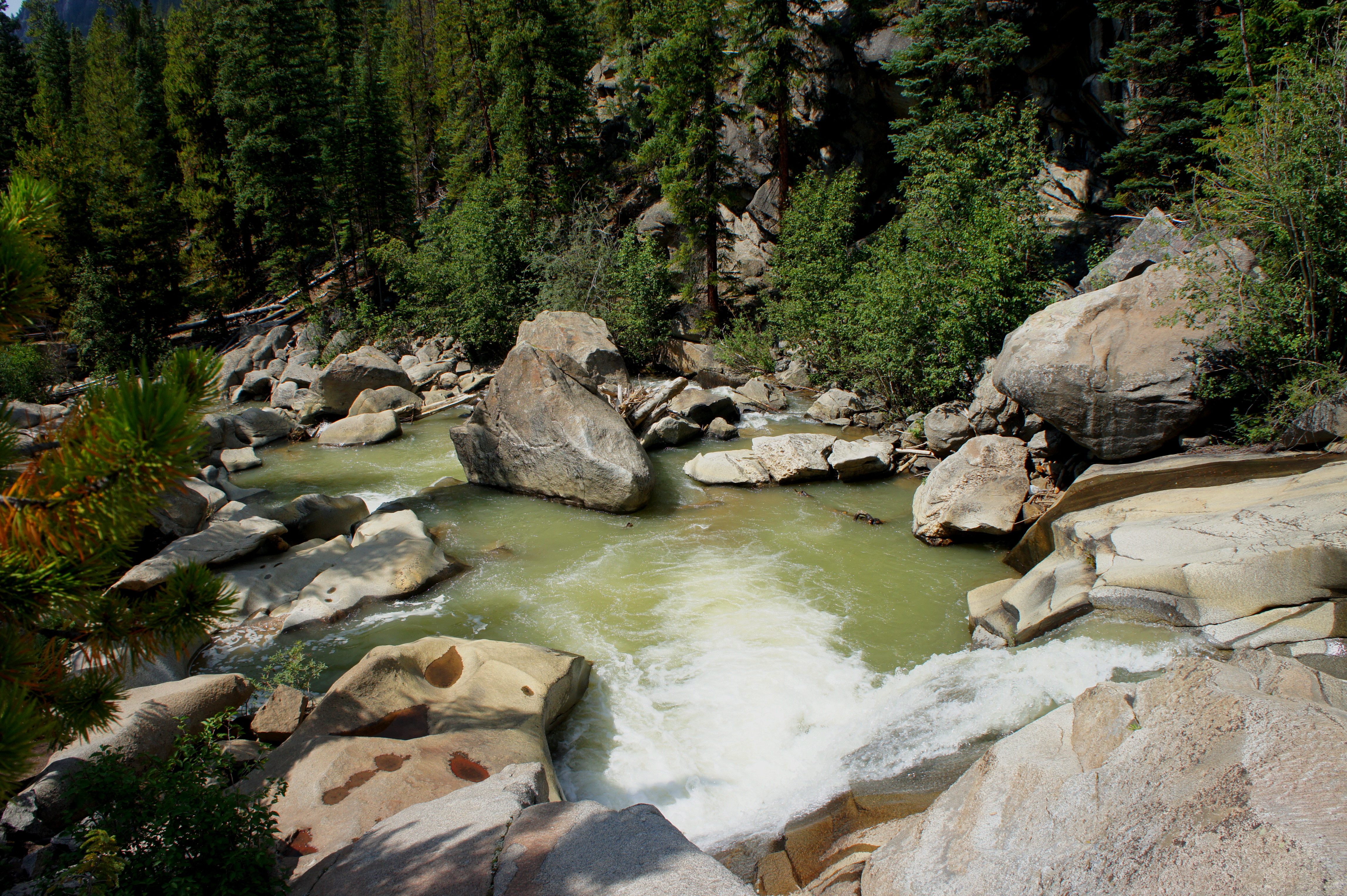 Before crossing the Roaring Fork River, first follow the level, handicapped-accessible trail that skirts the northern bank to an excellent viewpoint of the rushing cascades. Despite the name, the impressive flow and drop of the chute could easily be considered a waterfall in its own right. Adding to the allure is the smooth bedrock through which the falls slice. There is also a picnic table at the end of the trail.