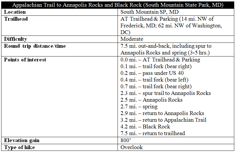 Appalachian Trail Annapolis Rocks and Black Rock Souht Mountain State Park Maryland hike information