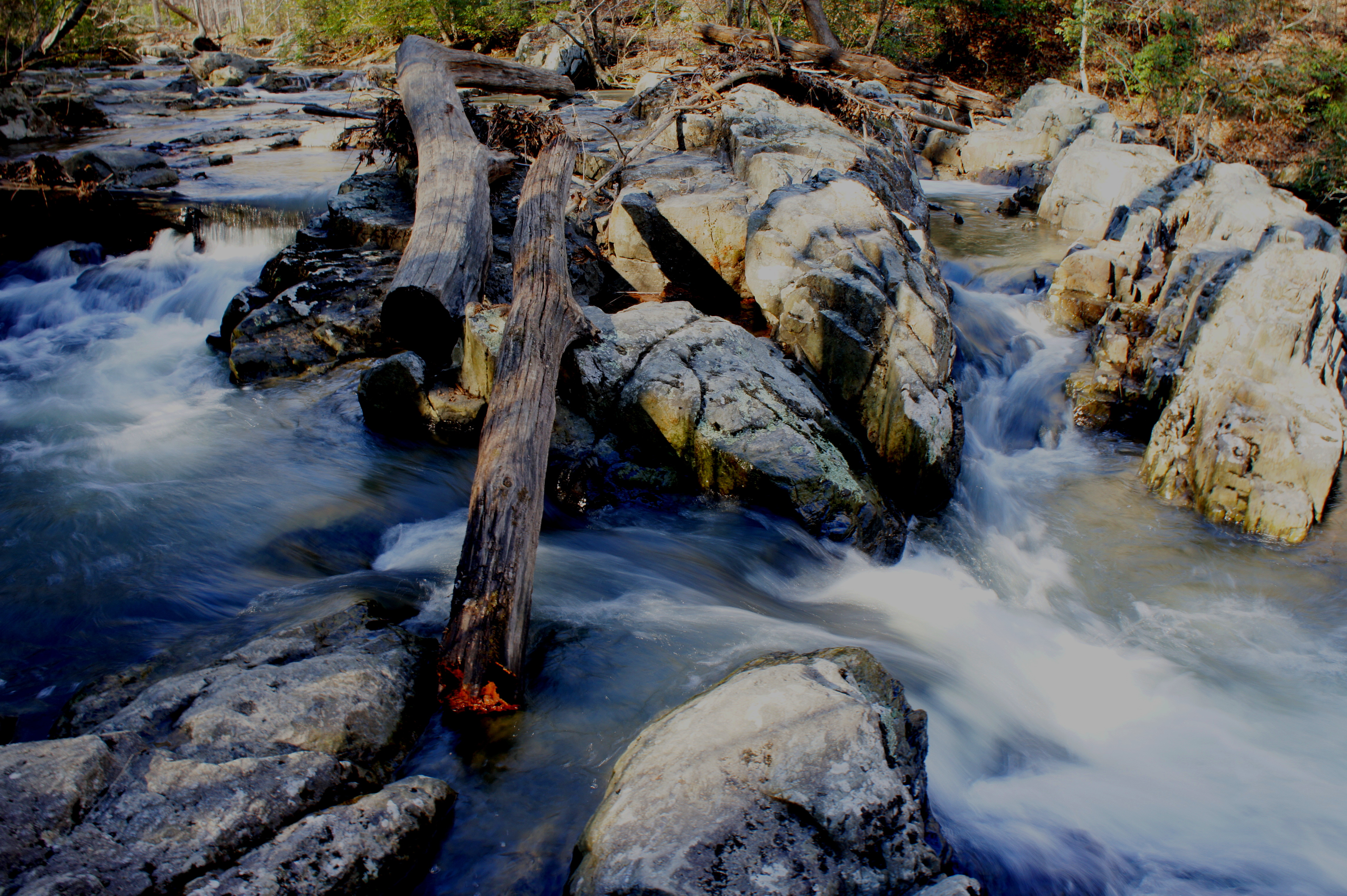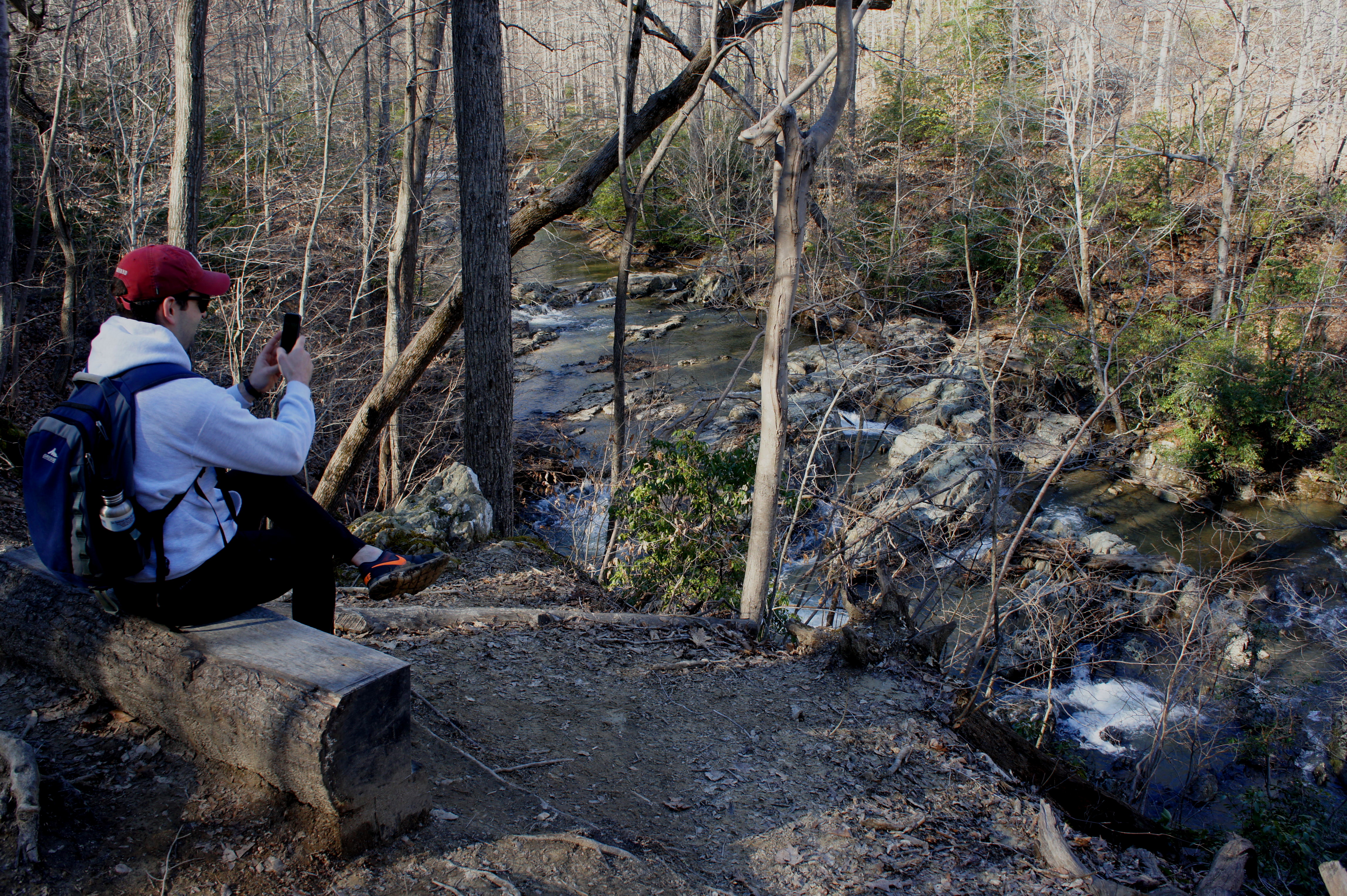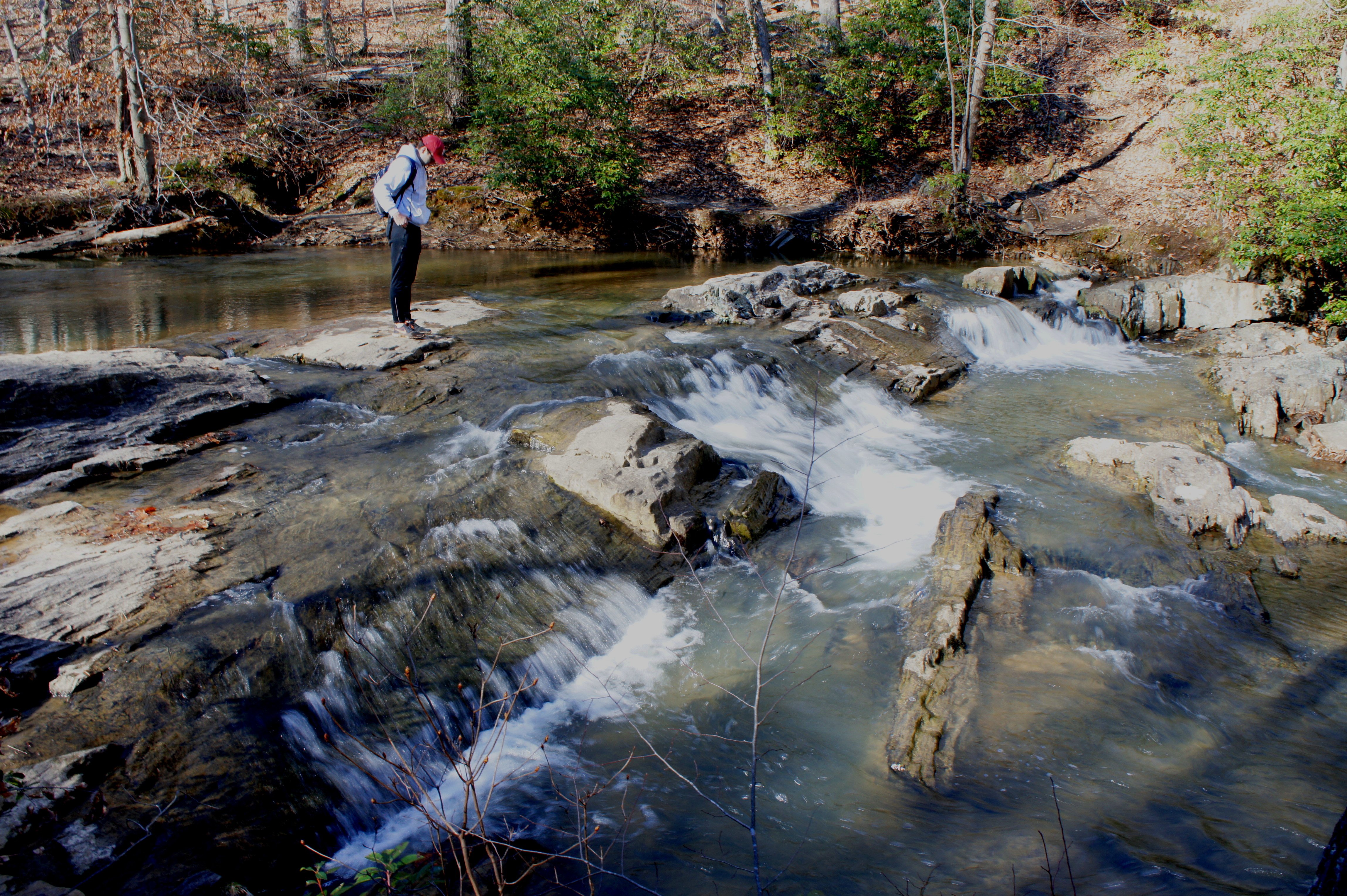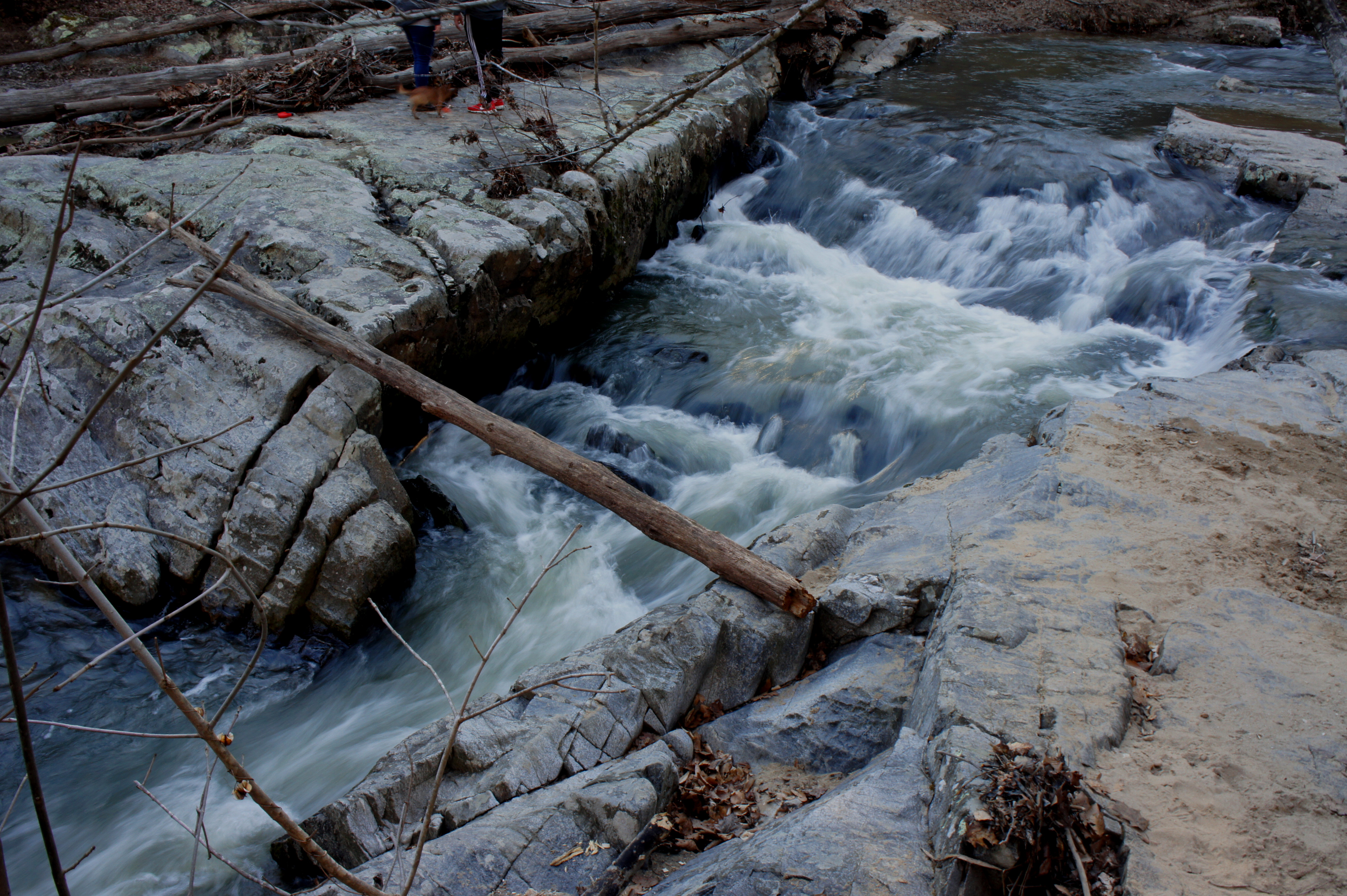 From here, follow the South Valley Trail northward as it traces the South Fork of the Quantico downstream. Slicing through the opposite bank, a noisy tributary drops into the creek. Around 8/10 mile from the trailhead, look for a set of minor cascades on the right as the creek rounds a left-hand bend.