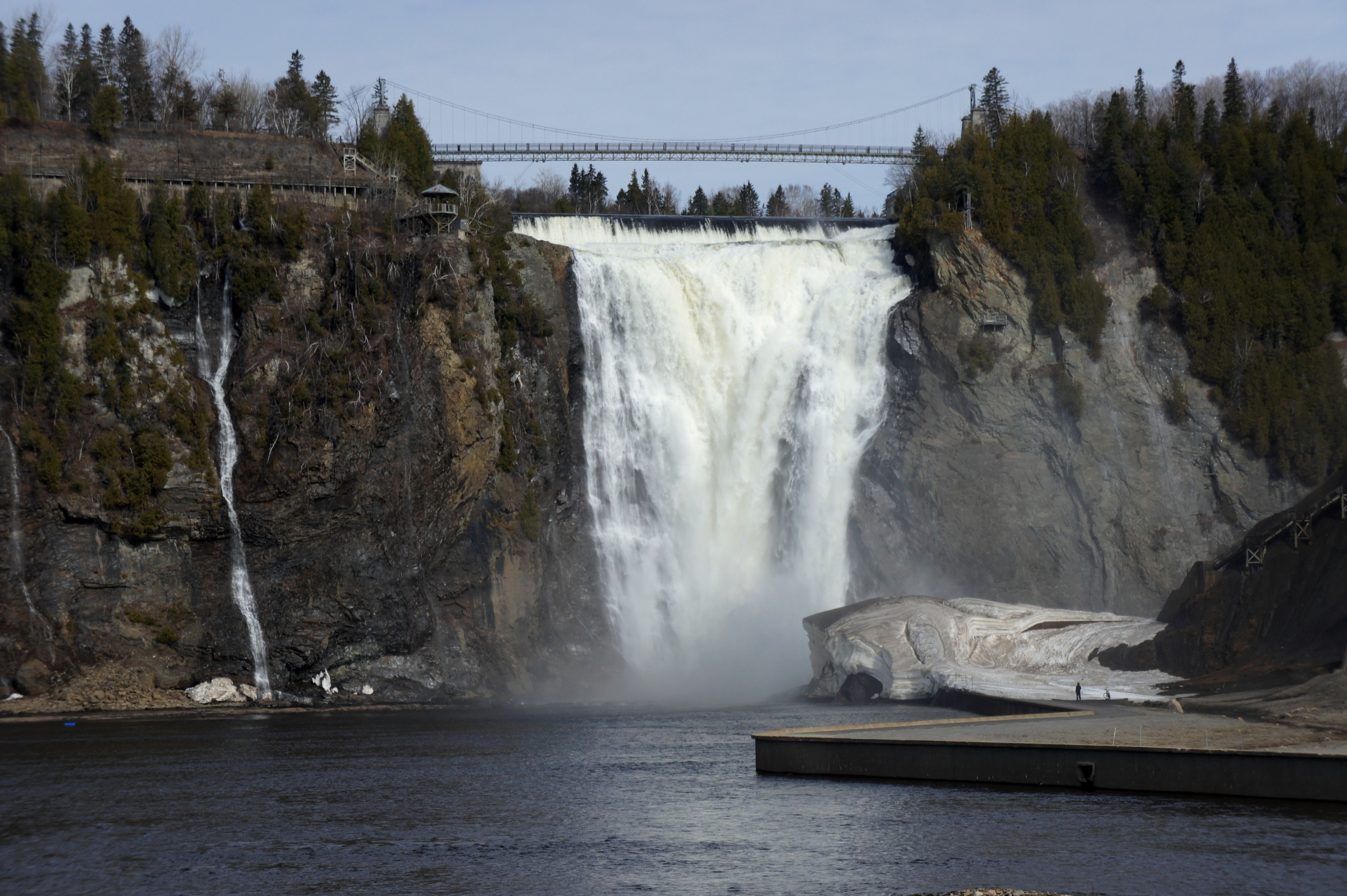At roughly 270 feet high, Quebec’s Montmorency Falls (a.k.a. Chute-Montmorency) dwarfs the better-known Niagara Falls in height. Situated less than a 20 minutes’ drive from the old town in Quebec City, the falls are named for an obscure duke, Henri II de Montmorency, the viceroy of Quebec (then New France) between 1620 and 1625. Today, visitors can most easily access Parc de la Chute-Montmorency from Highway 40 heading northeast from Quebec City, then clamber up the stairs or take the funicular to the top (season permitting).