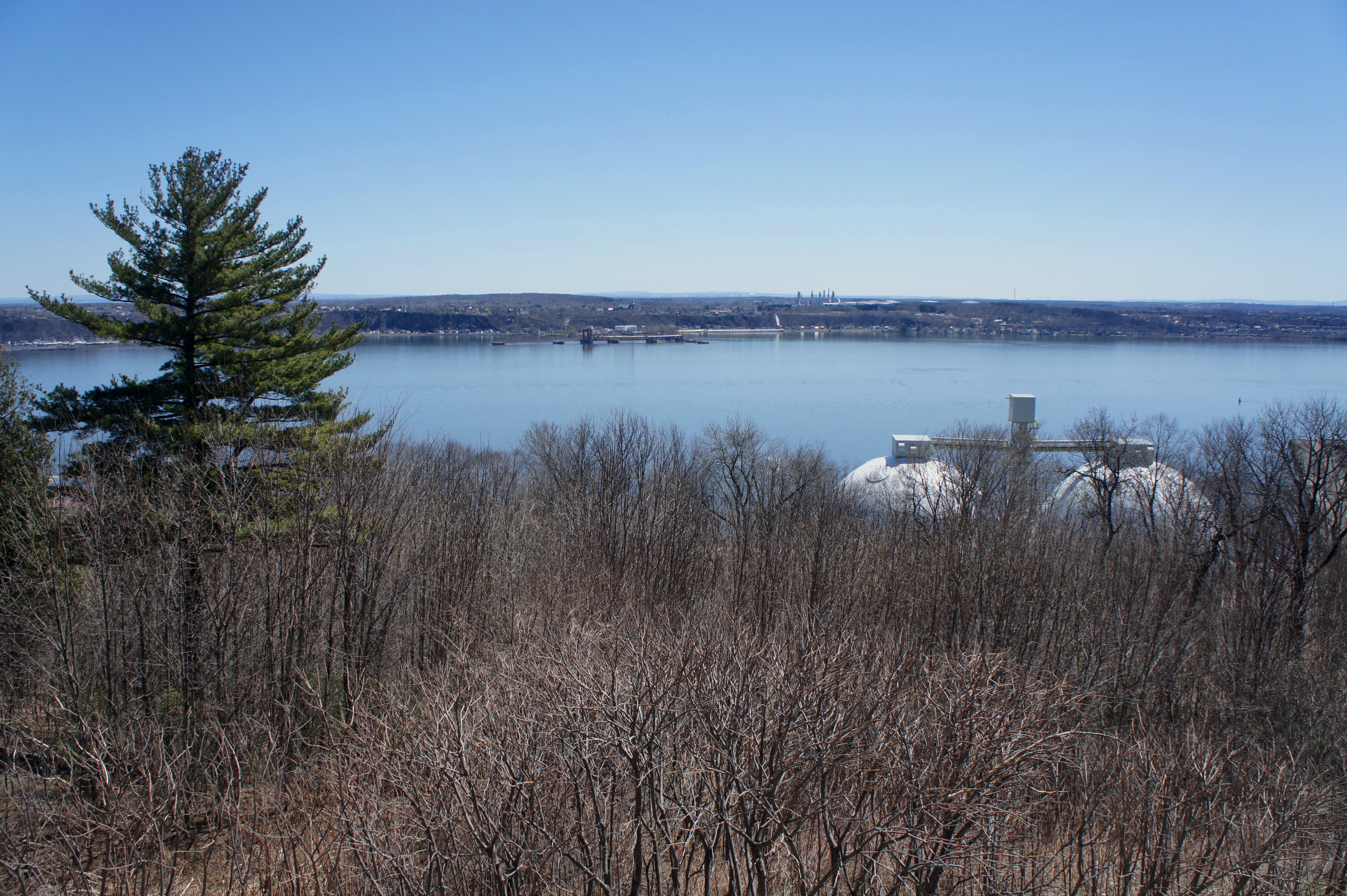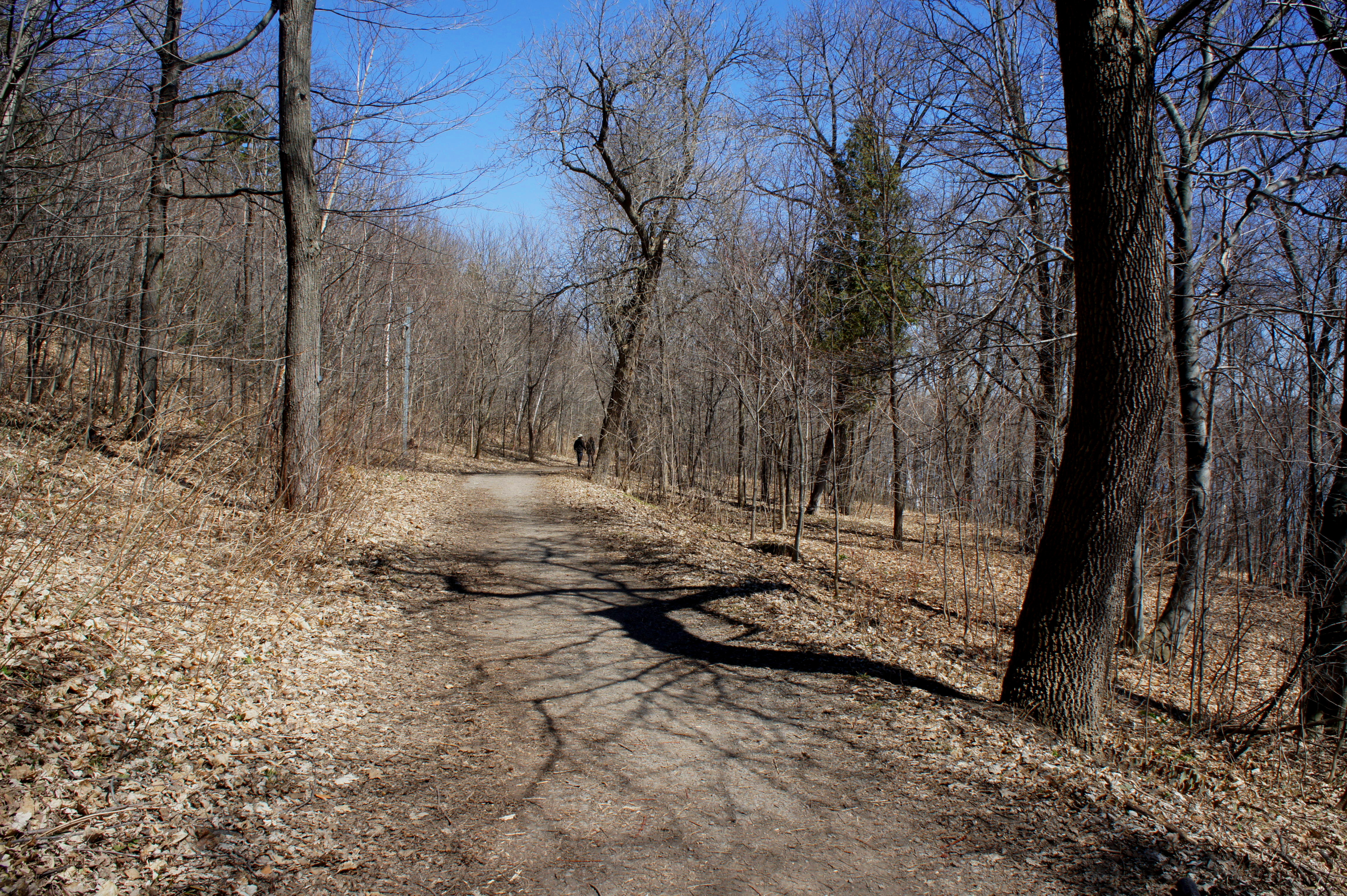 Roughly 1.5 miles from the start, look for the unpaved Nature Trail—unmarked but evident—heading left into the woods. This constitutes the return route back to the start of the circuit—and a peaceful departure from the busy park. The Nature Trail is relatively level and wide, alternating between a packed dirt and gravel surface. Follow the trail for 4/5 mile, enjoying the occasional but obscured views of the Saint Lawrence below, then stay right on the gravel footpath as the trail meets Avenue Ontario. The trail briefly reenters the woods, then spits out again at 2.5 miles. Here the Nature Trail ends and the steep Escalier Cap-Blanc (stairs) begin.