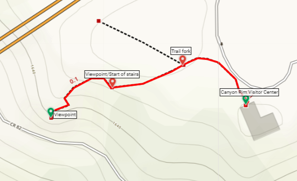 From the Canyon Rim Visitor Center, bear left on the sidewalk, then hang another left as the concrete path bears west, away from the road and parking area. The path quickly forks—bear left. (Note: Heading right leads to a lesser overlook and the privately-operated “Bridge Walk” Trail.) A few hundred feet from the start, the pavement ends, giving way to the wooden boardwalk. The level path leads through the trees to an observation area that offers narrow views of the New River Gorge Bridge, but not much of the canyon below.