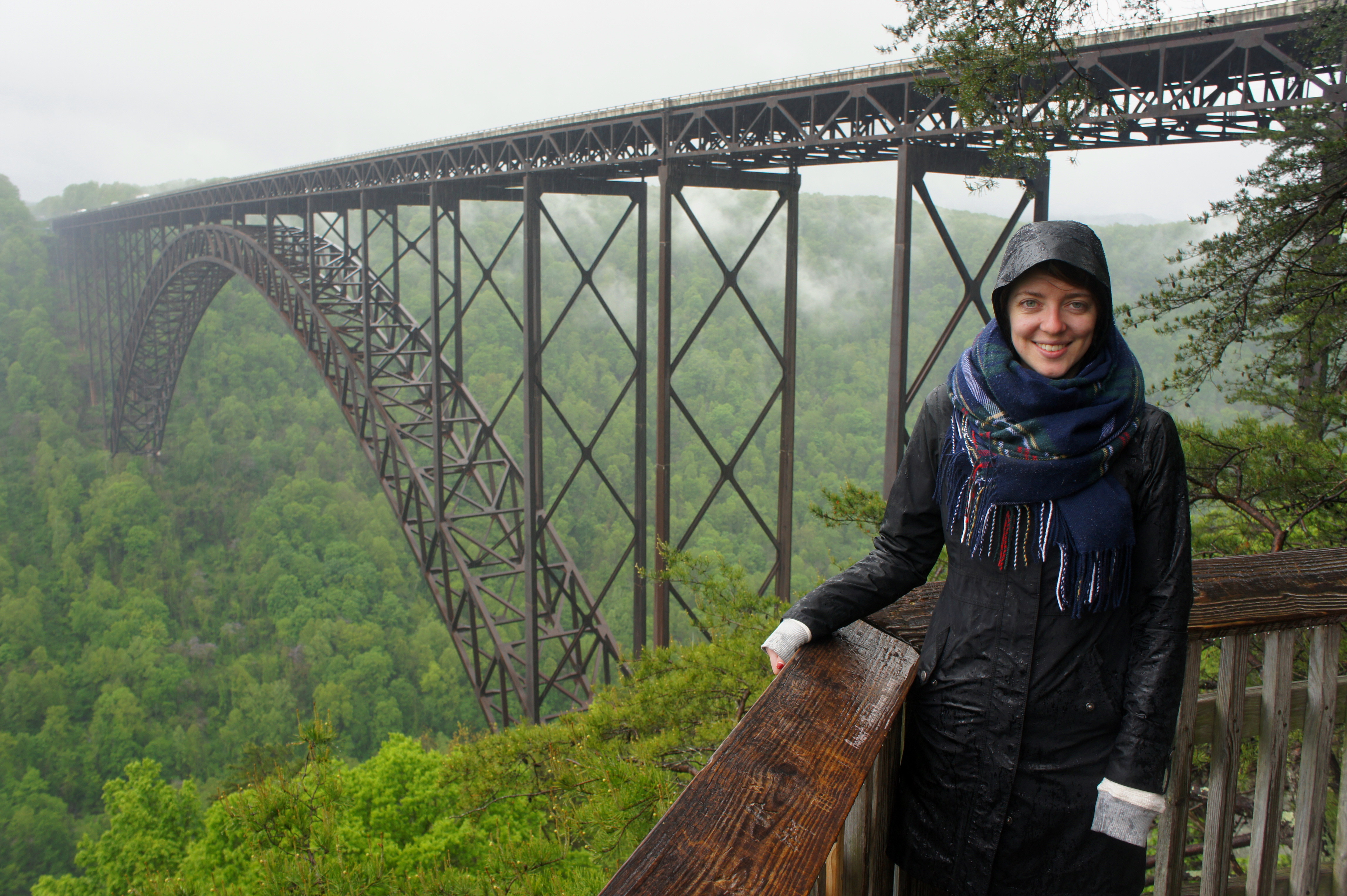 The highlight, of course, is the bridge span to the right—views of which are unobstructed. This architectural feat was completed in 1977 at the cost of $37 million and cut the travel time by car across the gorge from 45 minutes to a mere 45 seconds. (Note: The former route, a narrow and winding route into and out of the gorge, is visible down below where it crosses the New River at the Fayette Station Bridge.) In August 2013, it was listed on the National Register of Historic Places and today is one of the most photographed spots in West Virginia.