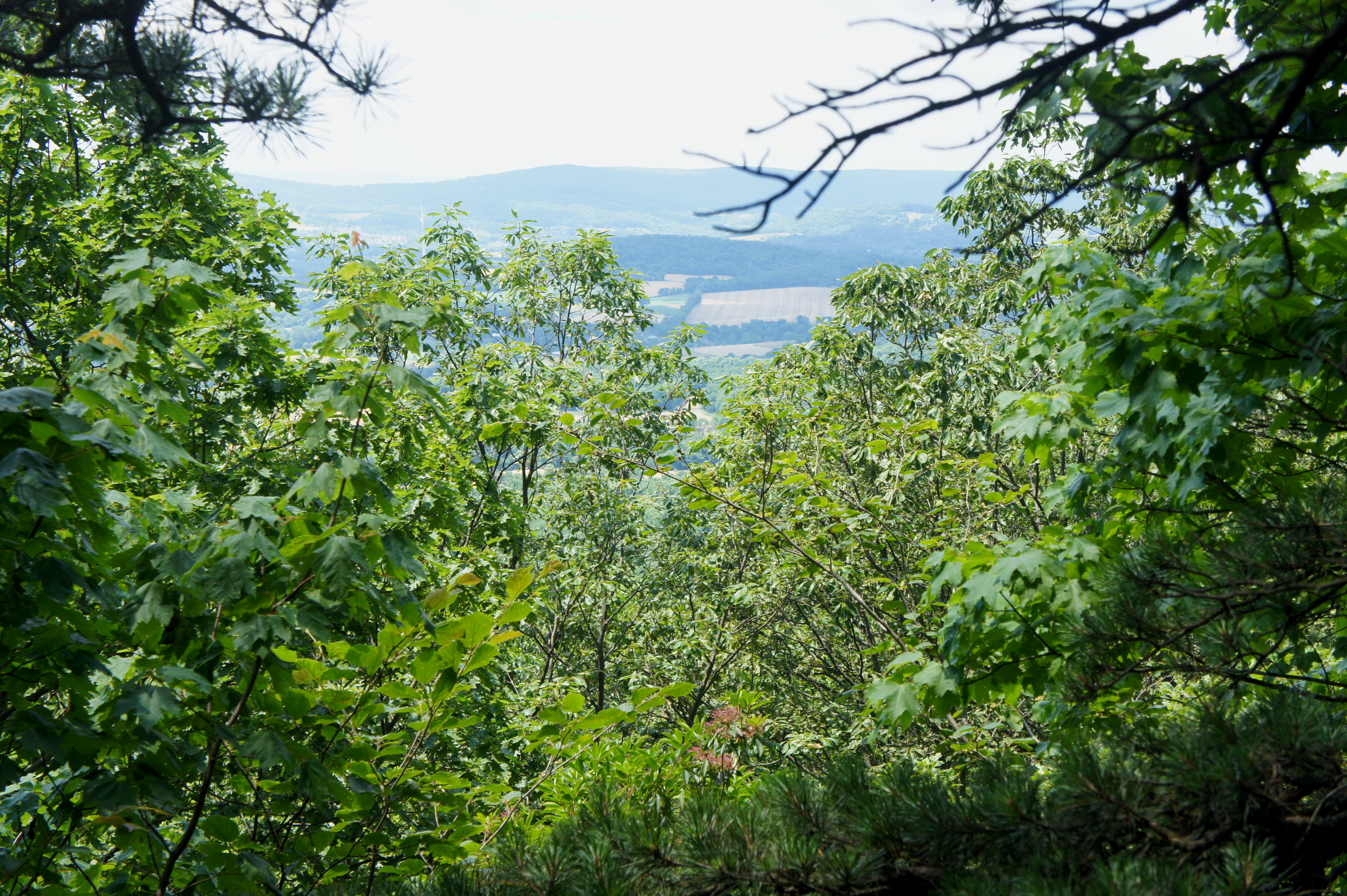 Not until 5.5 miles does the trail split again; this time, the Black Locust Trail enters from the left, merging with Yellow Poplar for the next ½ mile. With the road tantalizingly close on the left, the trail instead bears right, sheds around 100 feet in elevation, and approaches a spur trail leading to a “scenic view.” Turn right on the spur, following the well-trodden path under dense canopy to the overlook: a singular rock perched along the west-facing hillside. The spot provides an obscured and underwhelming view of the valley—but nonetheless the best that Yellow Poplar has to offer. (Note: Better views can be had at North and South Frederick Overlooks situated off Gambrill Park Road.)