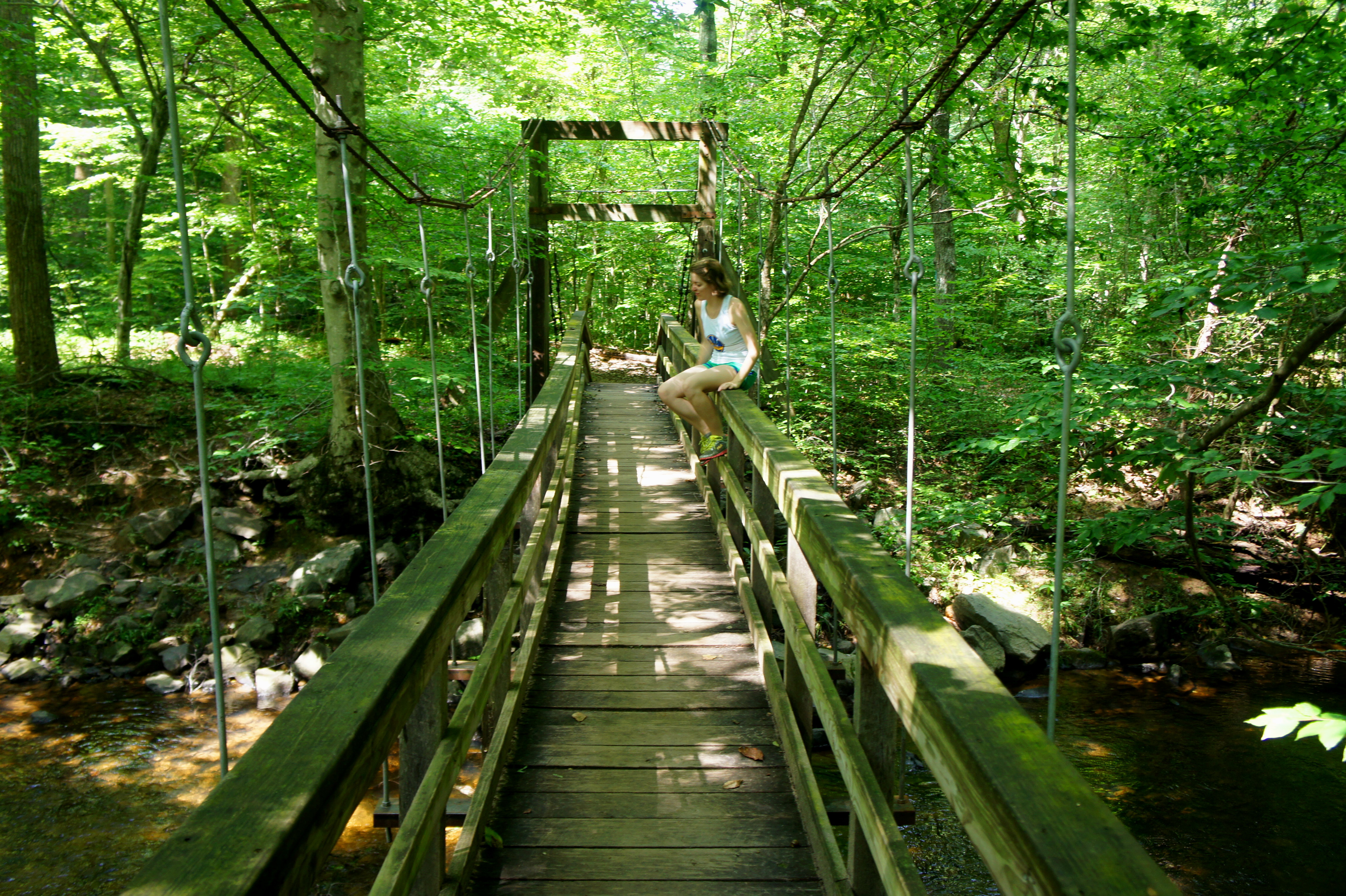 At 1.5 miles, take a right to follow the Laurel Loop Trail back to the start, or—as yours truly did—continue along the creek, now on the Laurel Loop heading west, for another 300 yards to reach a lovely suspension bridge on the right.
