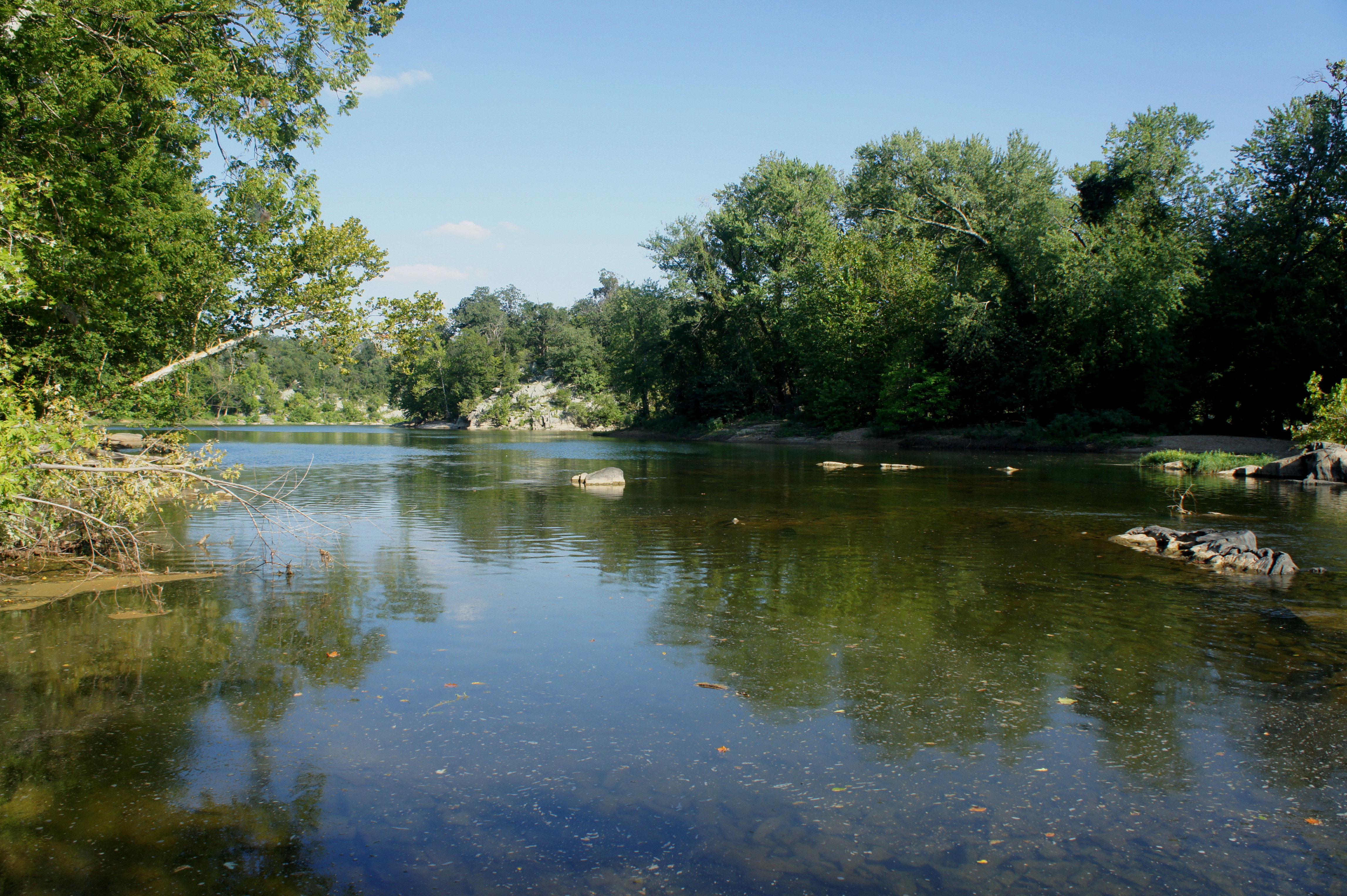 Here the Potomac River feels quiet, small, and intimate as Offutt Island cuts off this narrow channel from the main drainage. Minor tumbles over rocky waters give way to a still basin, hued with a glossy sheen.
