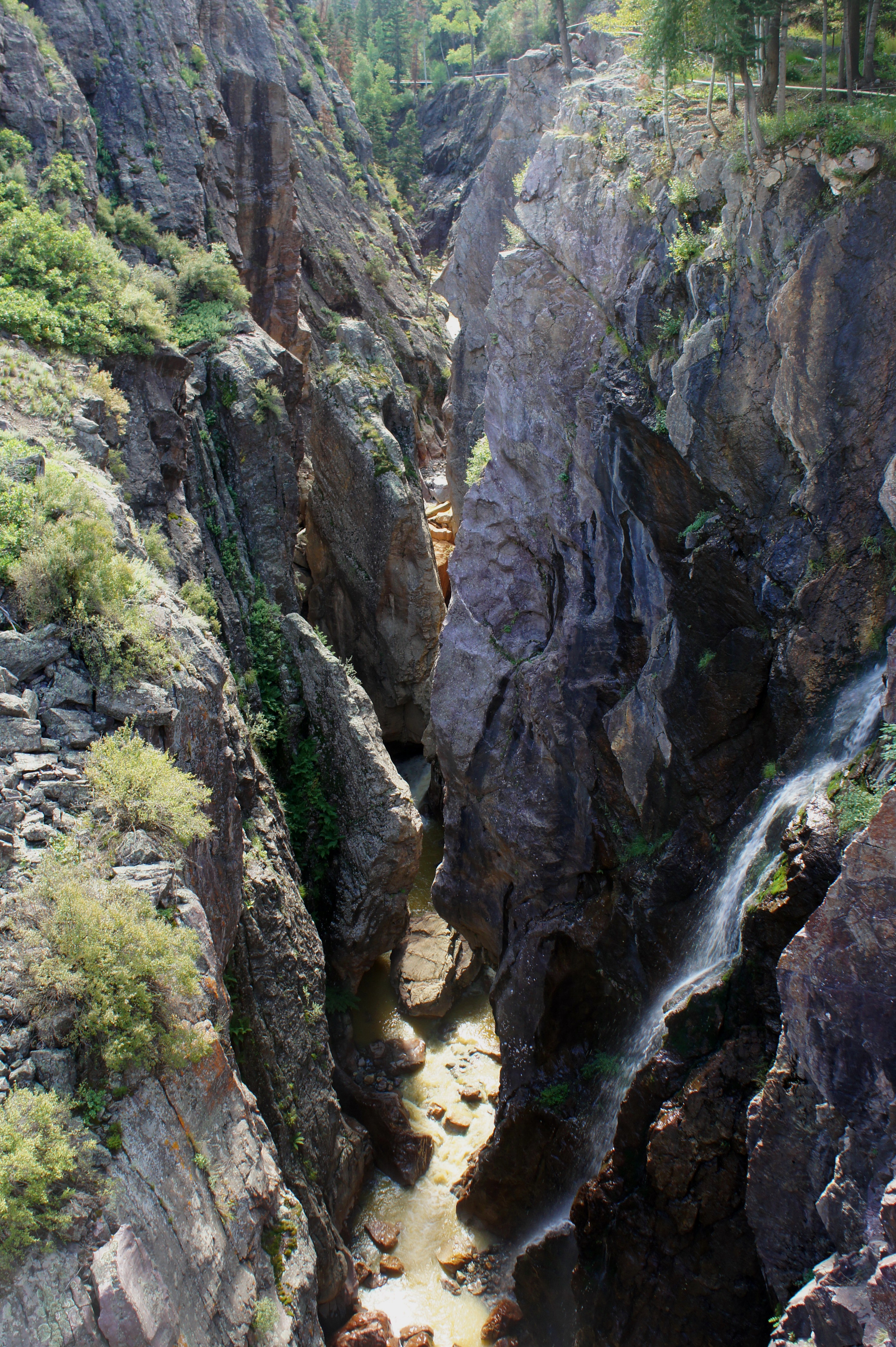 Nonetheless, the most intimidating section is less than 1/10 mile, and the steep incline on the right gradually diminishes as the Ouray Perimeter Trail approaches Lower Cascade Falls.