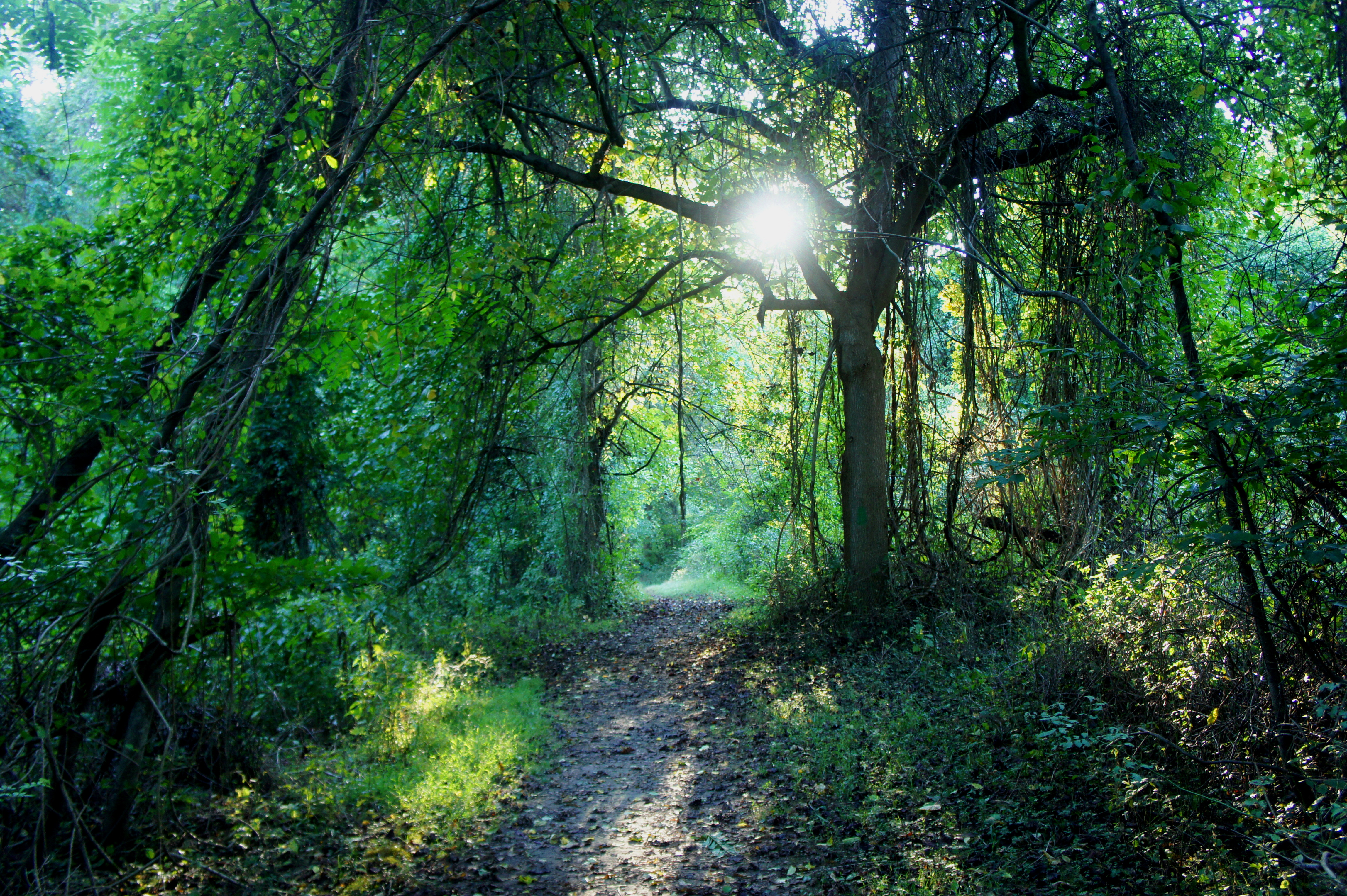 With the confusing junction behind, hikers can now focus on the scenery: a dense, hardwood forest laced with dangling vines and verdant undergrowth. After ¼ mile, the initial climb ceases, and the path rounds a left-hand bend, where a stand of towering tulip poplars awaits on the right. In the next stretch, the wide path briefly descends, then climbs again, ever so gradually. At ½ mile, the loop trail rounds another left-hand bend and approaches the park campground. (Note: at 0.63 miles, the route forks, with the main trail heading right, while a spur to the campground heads straight.)