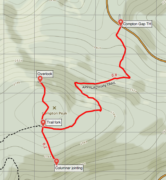 Map of Appalachian Trail to Compton Peak; National Geographic Maps/AllTrails, alltrails.com (Check out the PDF version, interactive map, and MapMyHike track.)