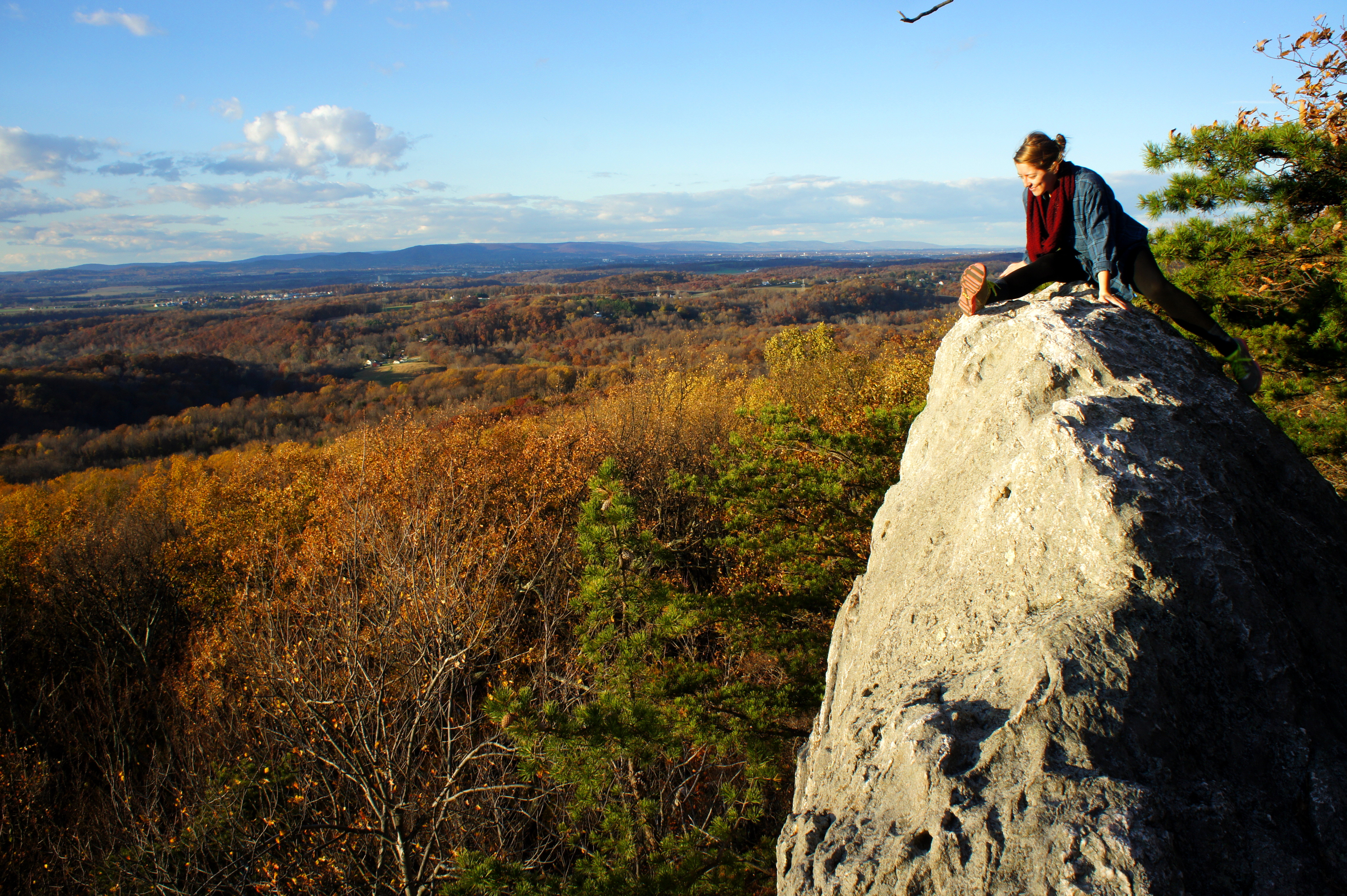 From the South View, there is a social trail heading left that offers a shortcut to the North View, equally as appealing, though there is not as much room to (safely) sit for a break. From here, you can see up the valley toward Frederick, Maryland, a city of 67,000.