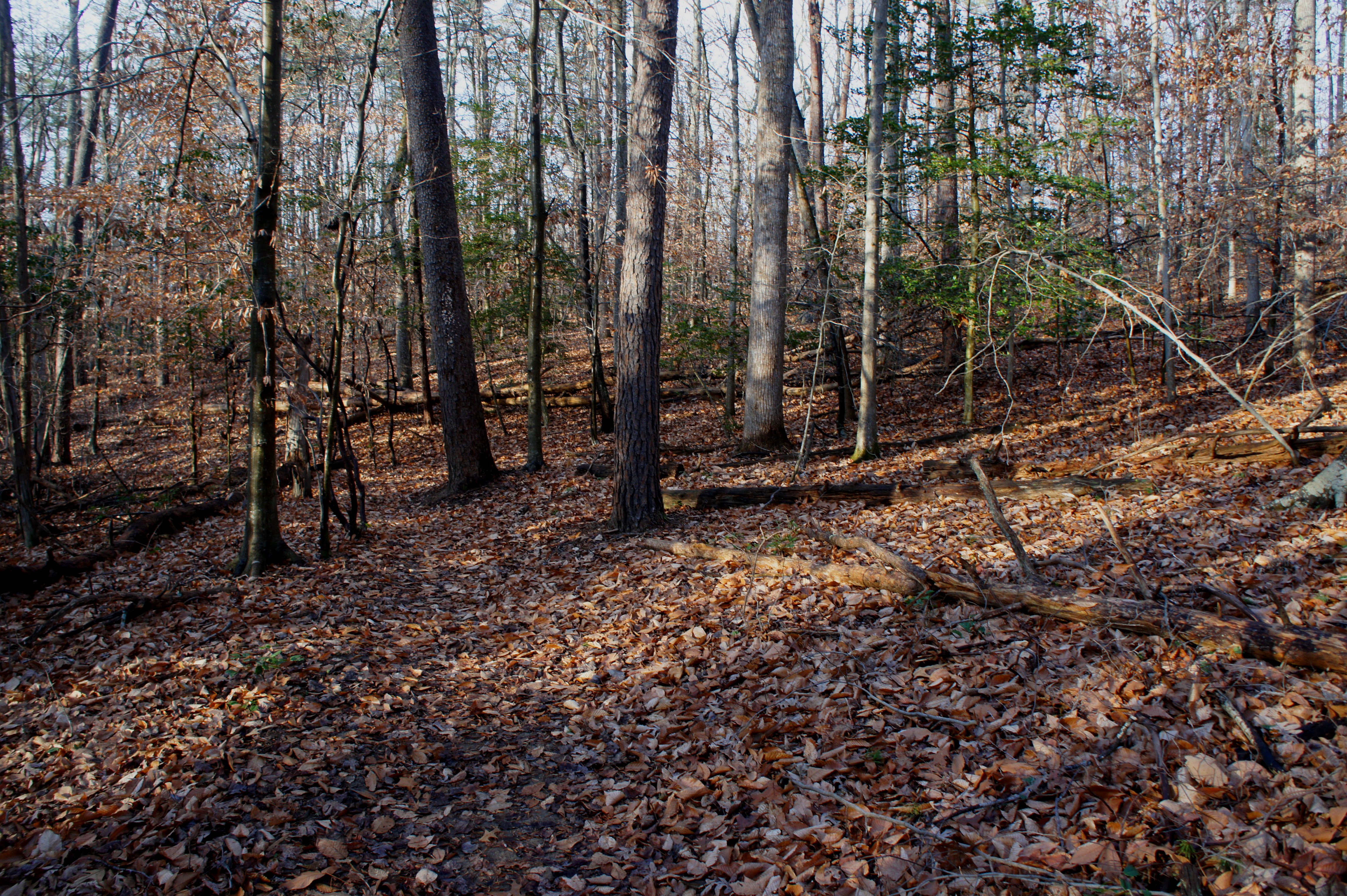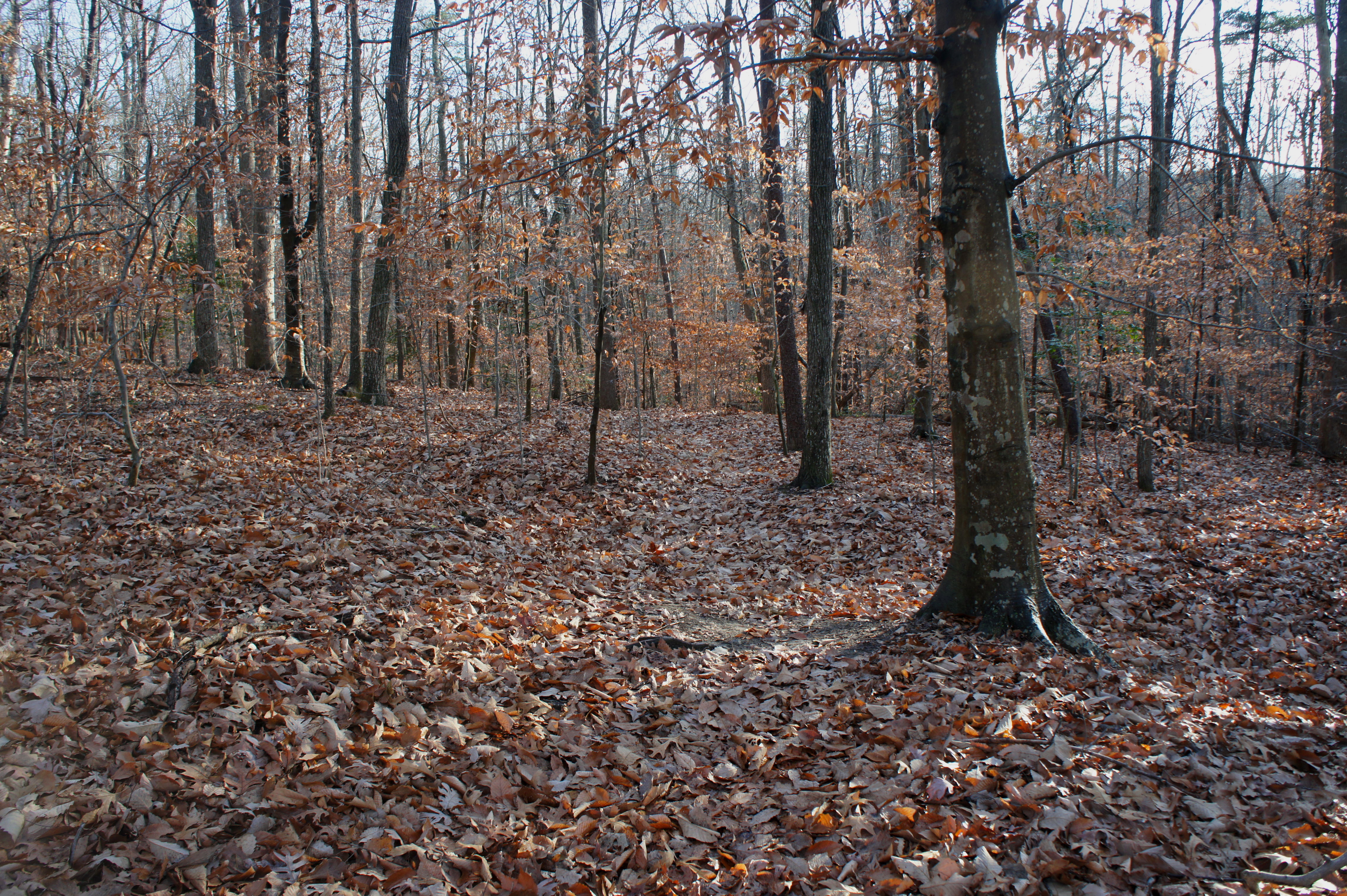 The Muschette Trail is one of a pair of very short loop hikes that take off from the Pine Grove Picnic Area in Virginia’s Prince William Forest Park (the other is the wheelchair-accessible Piedmont Forest Trail). There’s not much to it – except an opportunity to stretch your legs and explore the area’s piedmont forest. It’s also the park’s only true mountain bike trail (all others are paved or graveled roads).