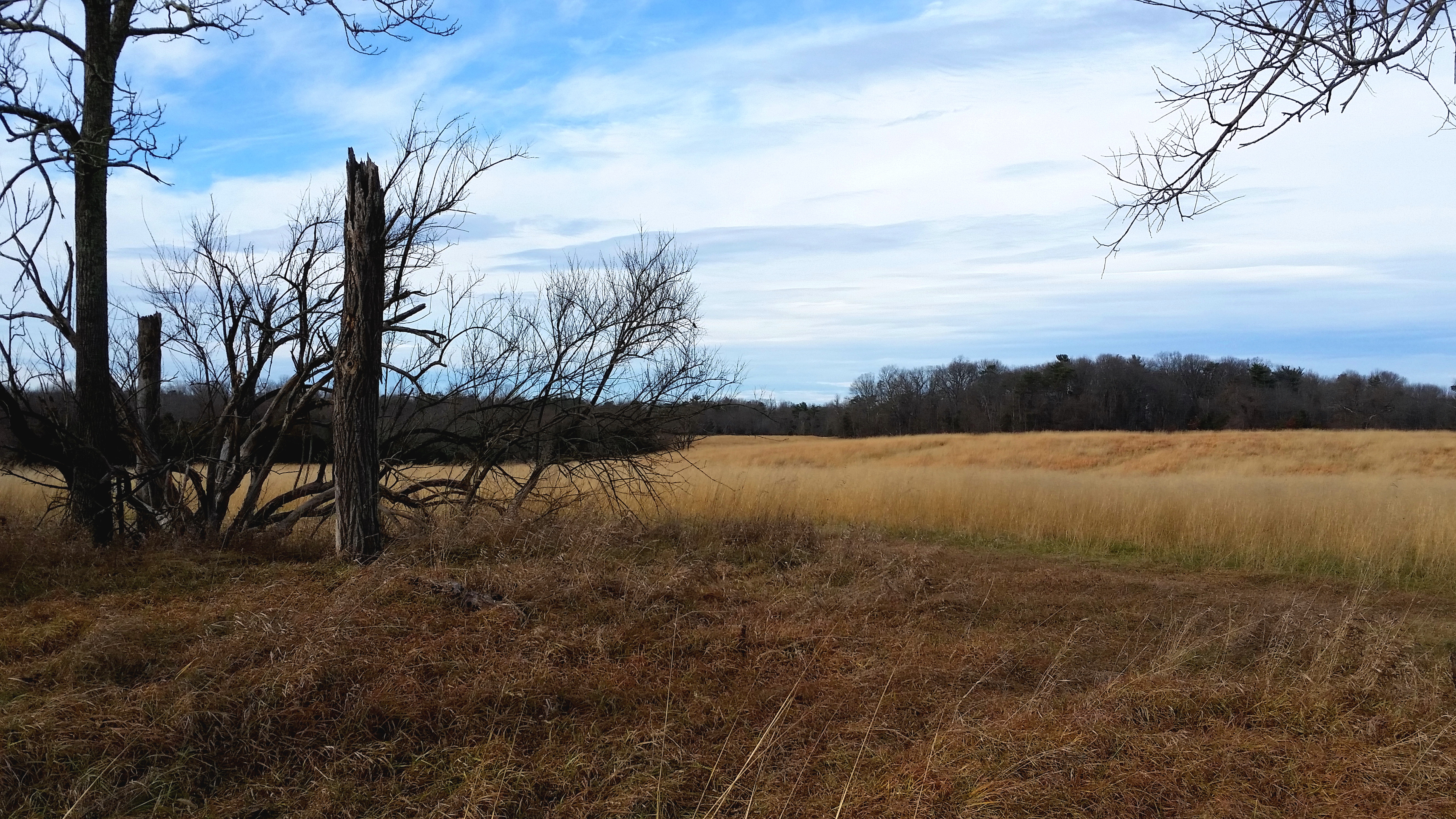From Farm Ford, the trail bears west, leaving the creek behind, and traces a small ravine laced with pine needles. At 2.6 miles, the trail emerges from the woods and back onto Van Pelt’s old farm. Take a right at the junction, hugging the tree line on the right.