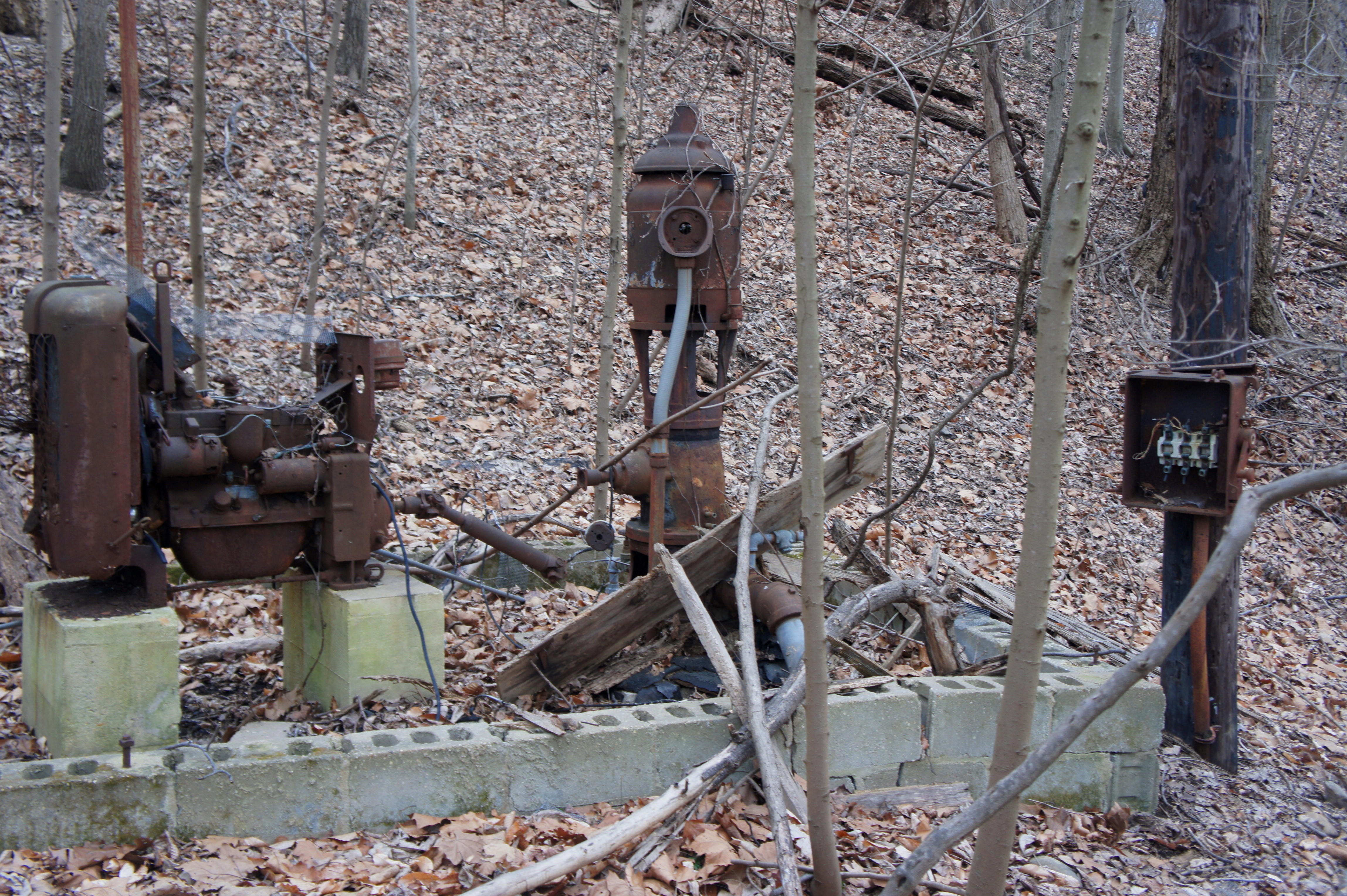 After 1/10 mile, the trail passes an unidentified, old rusted contraption on the left; a couple minutes later, upon reaching a fenced-off building on the left, take a minor detour to the right to the banks of Swan Creek, which feeds into the Potomac just downstream.