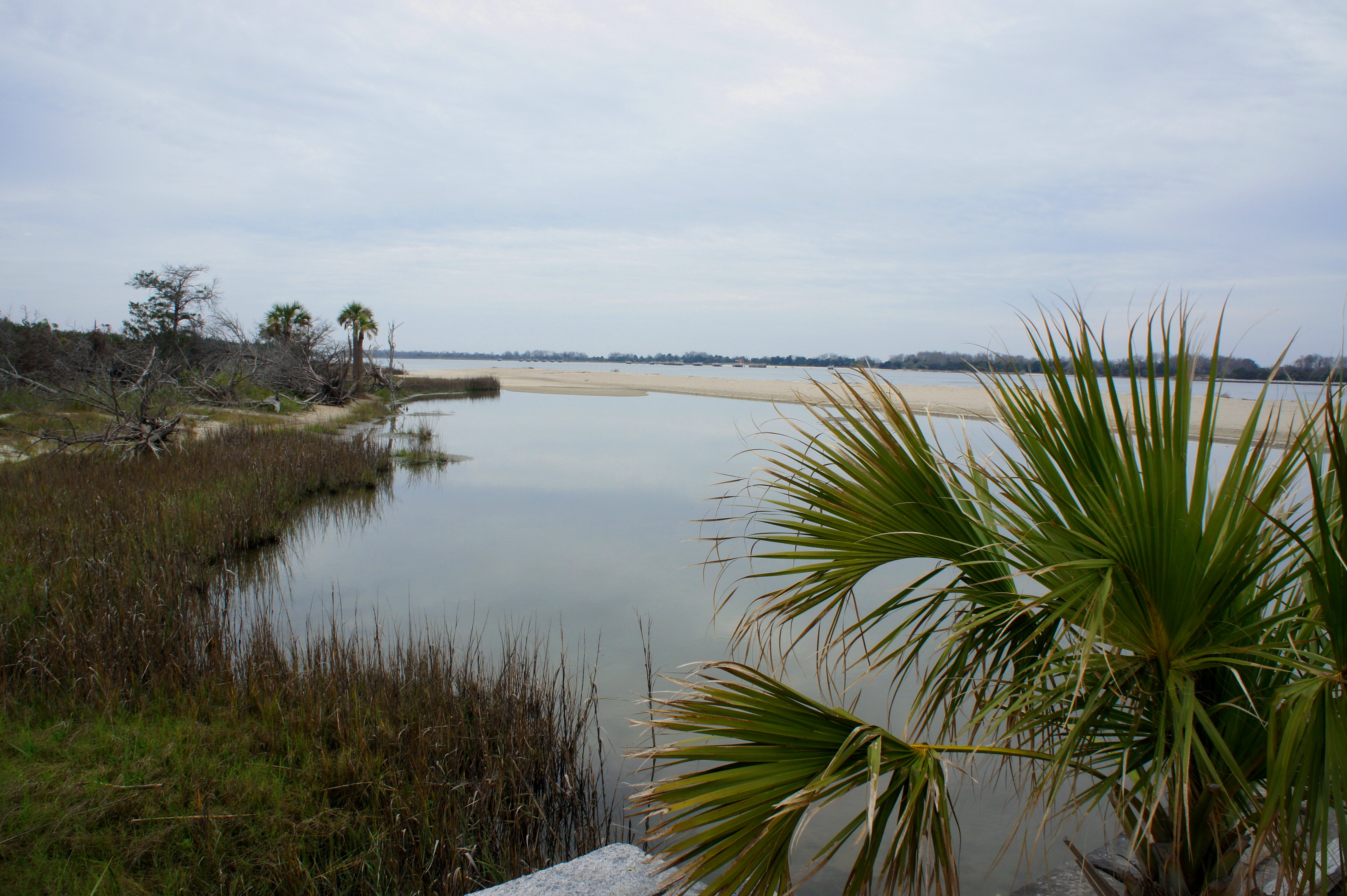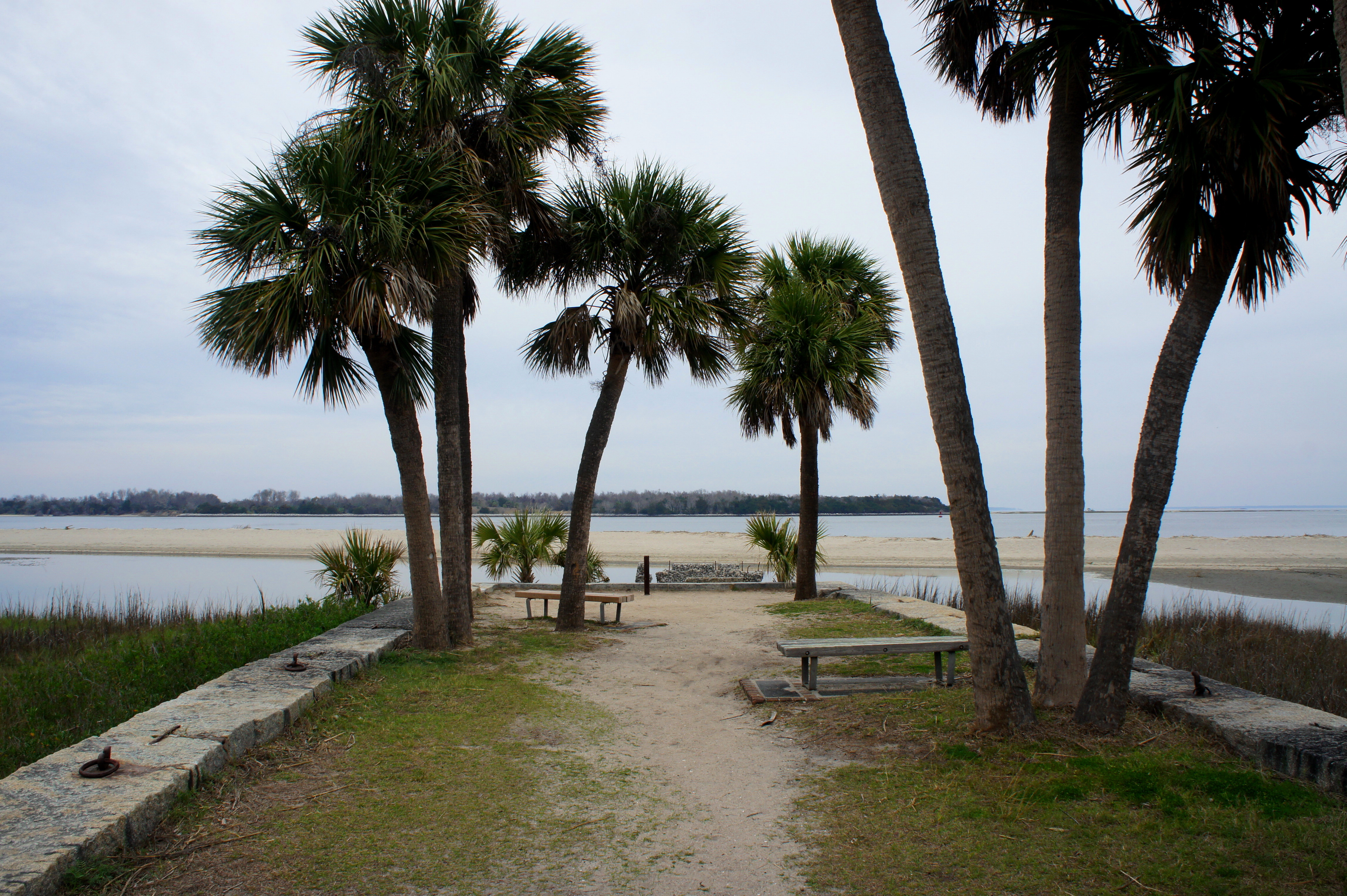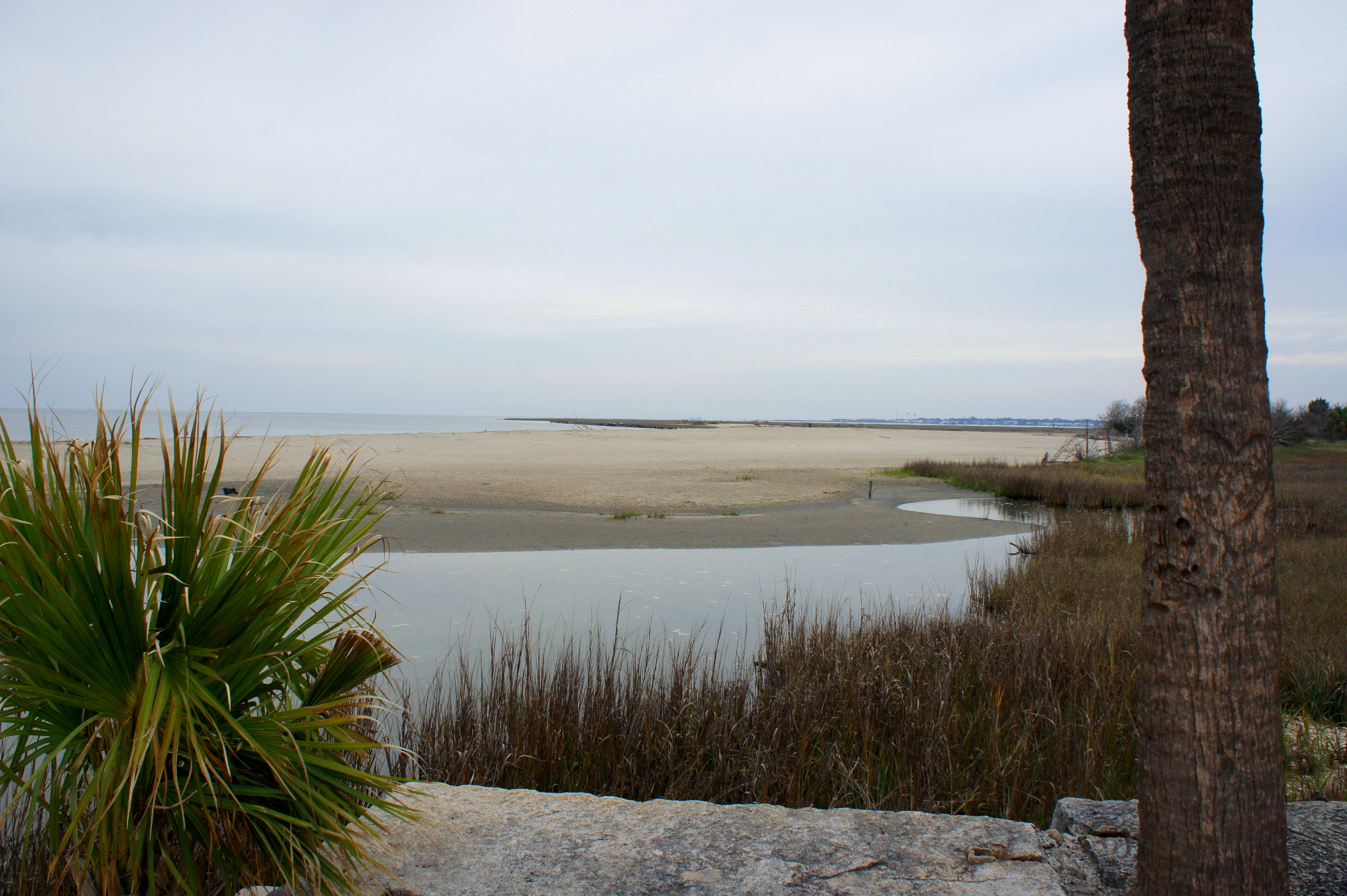 Skirting the battery to the left, the path continues north and splits again at around 0.13 mile. Head straight, with the pier now in sight. Scampering down to the sandy viewpoint, look off to the right: this is the mouth of the 300-mile Savannah River, a key avenue for blockade runners during the Civil War until the Union capture of Fort Pulaski in April 1862.