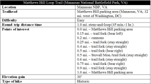 Matthews Hill Loop Trail hike information Manassas