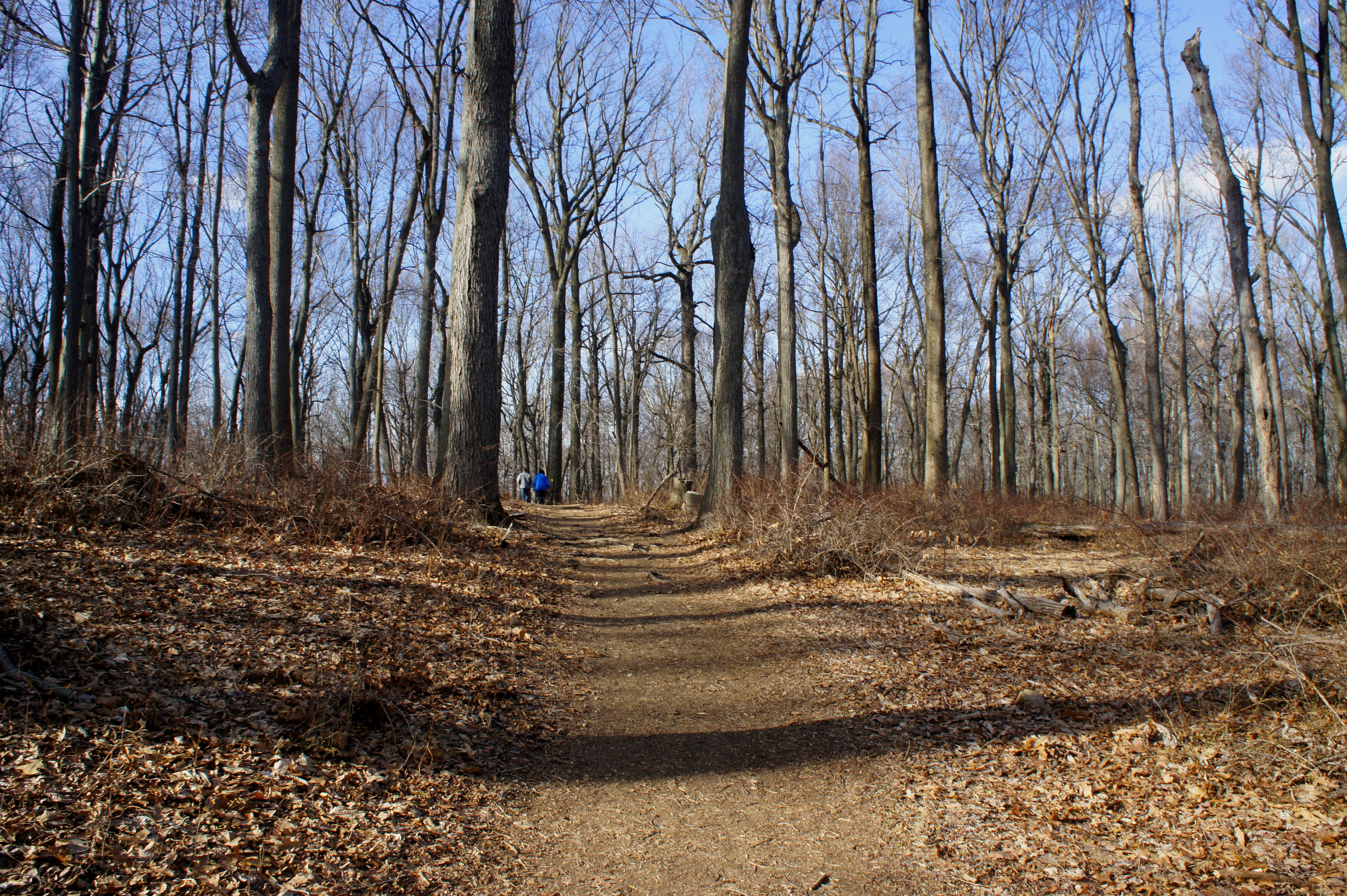 Morristown National Historic Park’s Jockey Hollow—once a sprawling winter camp for George Washington’s Continental Army in 1777 and 1779—is now a popular hiking destination for local New Jersey residents. Shielded from British forces by the Watchung Mountains, Jockey Hollow was a strategic location where Washington could train and prepare his nascent force before a summer of fighting; the brutal cold and poor living conditions, however, would test the soldiers’ mettle. The Yellow Trail—situated beyond the Jockey Hollow Visitor Center—covers part of the terrain occupied by Washington’s forces, including reconstructed examples of soldiers’ quarters and an open field where guards would assemble each day for inspection. The woodsy hike, a combination of the Soldier Hut and Grand Parade Trails, forms a 2.25-mile circuit that takes a little over an hour to complete.