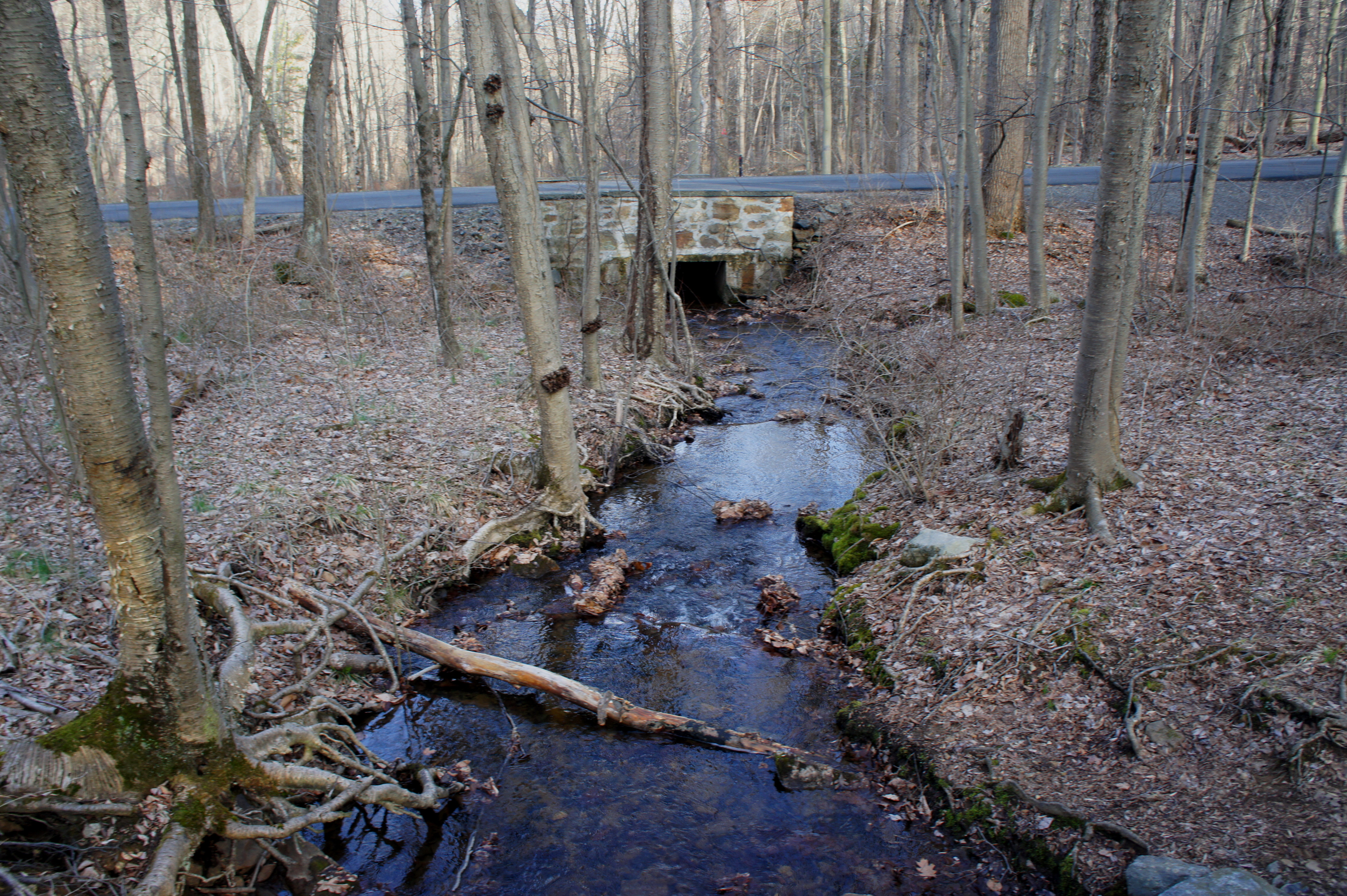 Briefly sharing the path with the Aqueduct Trail, the two paths diverge after crossing Primrose Brook. The Yellow Trail follows a minor tributary then climbs sharply uphill, the final push before returning to Wick Farm. The grade eases at the 2-mile mark; bear right at signpost #47. From here the trail passes behind an old apple orchard.