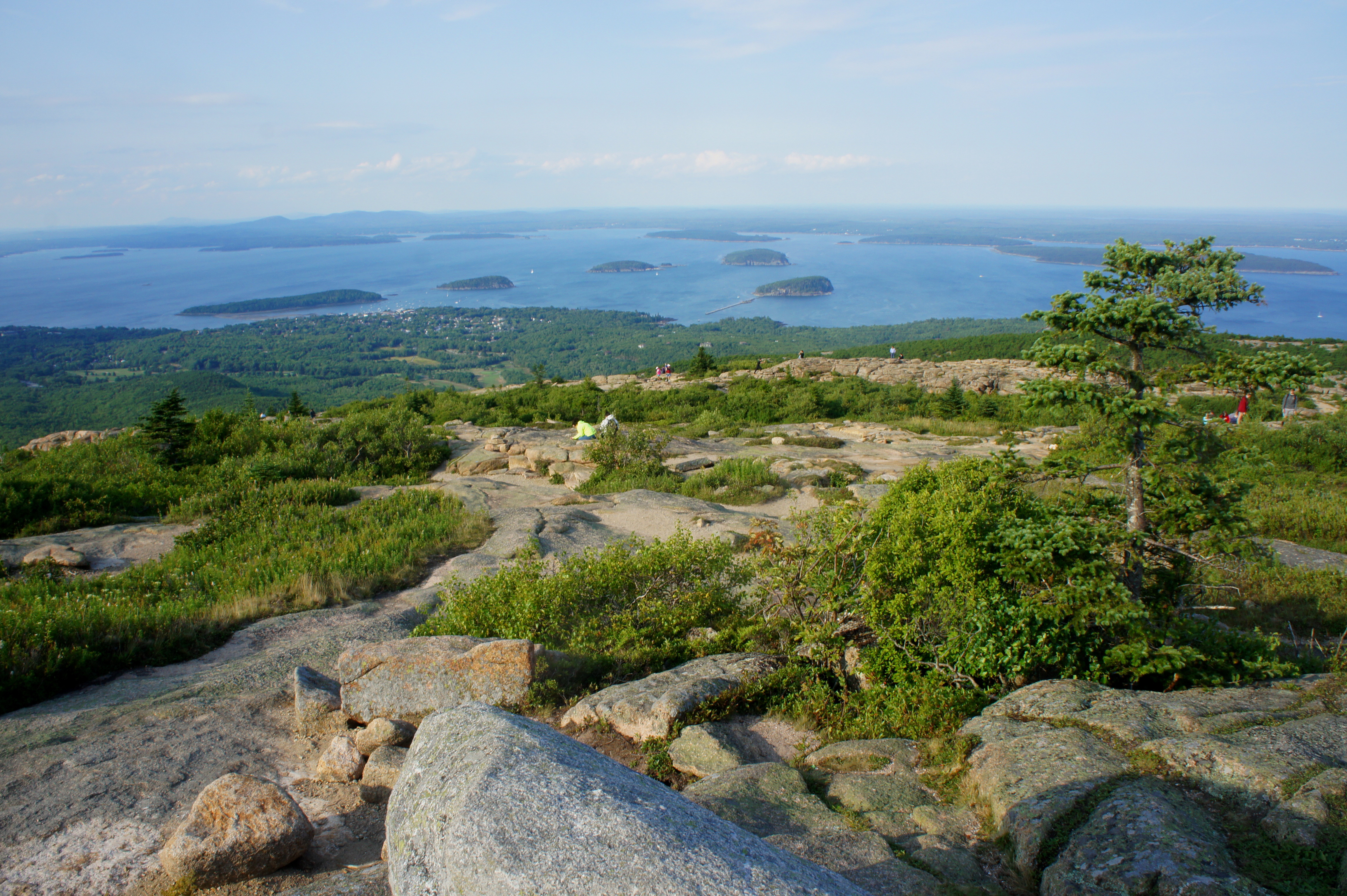 At 1,529 feet, Cadillac Mountain is the tallest peak in Acadia National Park and has no equal on Mount Desert Island that matches its panoramic views. Three arduous trails climb the mountain, though most opt to drive the winding road to the summit. Being one of the easternmost mountains in the United States, visitors flock to the mountaintop before dawn to see “the nation’s first sunrise.” A short loop trail offers views to the south, north, and east, while a series of turnoffs halfway up the mountain provide a look west to Eagle Lake and Mount Desert Island’s far western shores.