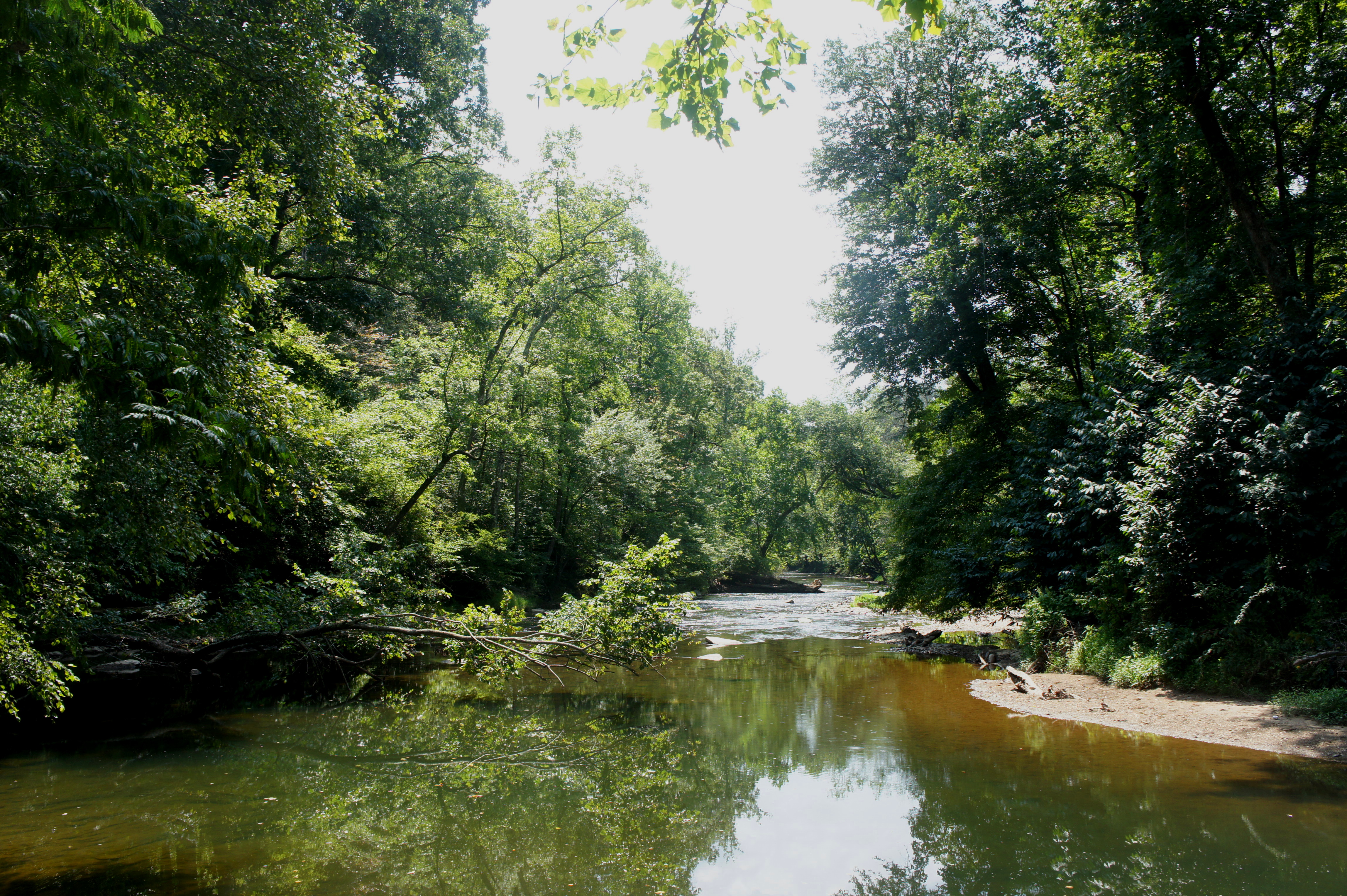 Montgomery County’s Seneca Creek State Park offers quiet isolation in one of Maryland’s most densely populated areas, particularly the park’s wild southern section. Here two moderate paths—the Seneca Greenway Trail and Seneca Bluffs Trail—snake through the Seneca Creek stream valley between Highway 28 and the Potomac River; combined, the two make for a long day hike, strenuous only due to the length of the nearly 14-mile circuit. There is, admittedly, not a lot to see—the hike is shrouded mostly in thick woods with some limited streamside views—but the loop covers a lot of wilderness in an area that is close to DC’s Maryland suburbs. Keep an eye out for wildlife—on my trip in August 2017, I saw a river otter, a groundhog, a bald eagle, two great blue herons, and several fawns. (Note: It is possible to shorten the hike to 12.2 miles by only doing the sections between Highway 28 and River Road—thereby skipping the additional trek to the Potomac—but, meh, where’s the fun in that?)