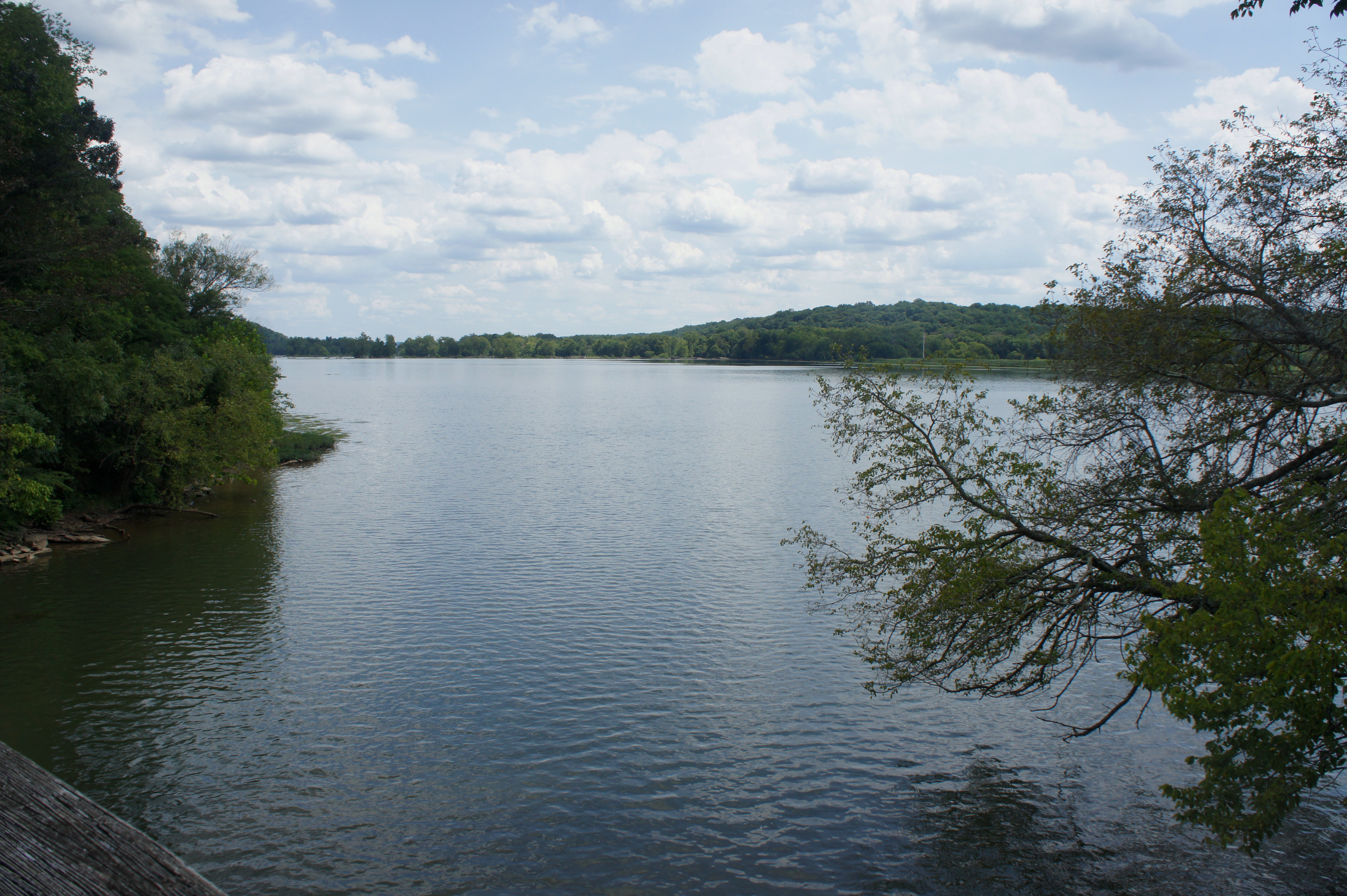 Seneca Creek, now seen on the right, drains a rather large watershed that extends into central Maryland. The water volume made it an attractive site for settlers in the 17th and 18th centuries, during which eight mills were built on Seneca Creek and its tributaries. By the 1800s, that number grew to 19.