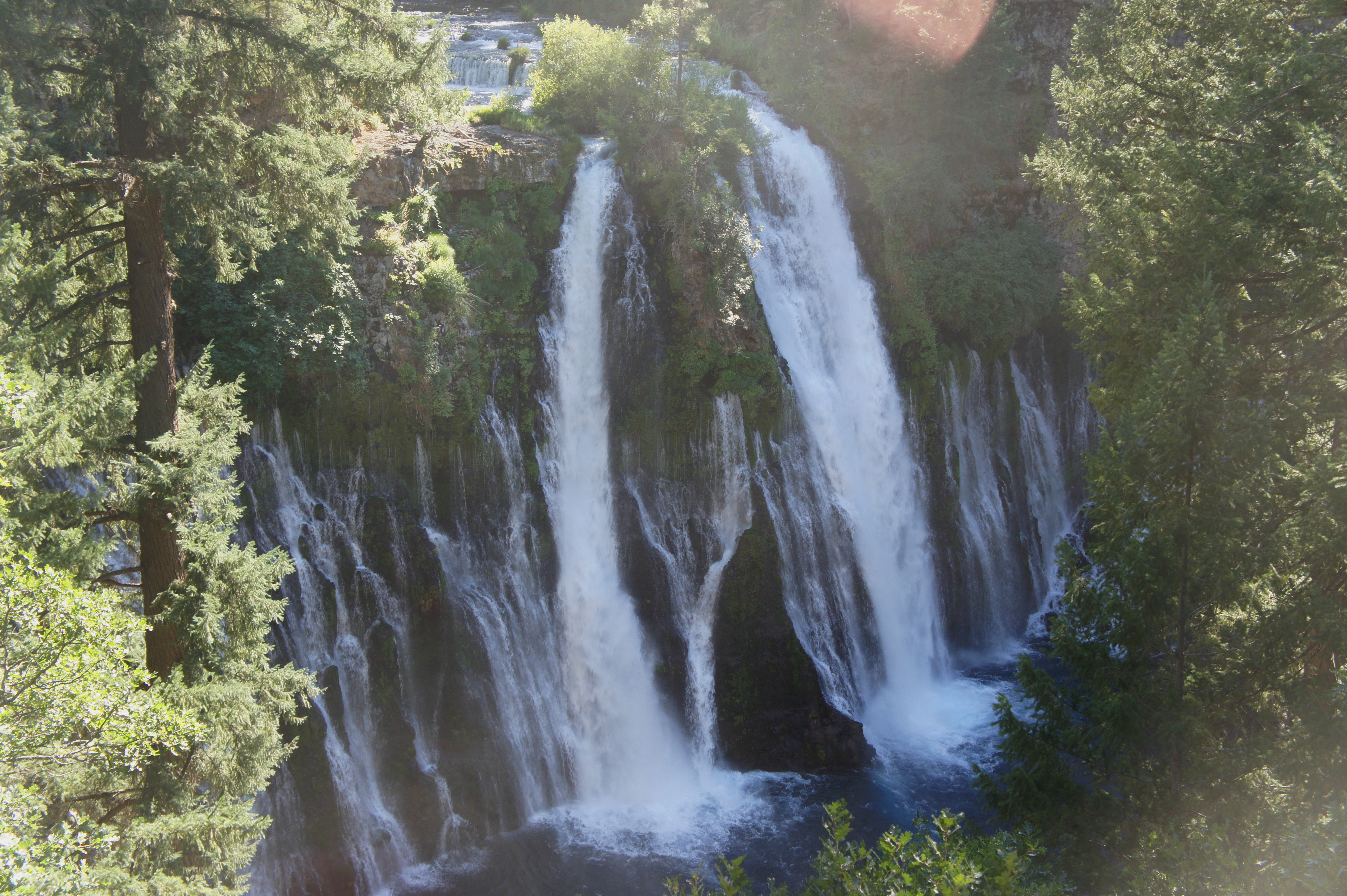 The descent to Burney Falls is steep, losing around 150 feet in elevation in less than 300 yards. After dropping down a pair of switchbacks, the path comes within reach of the falls’ shrouding mist; photographers line the path, seeking to capture the thunderous falls in a picture that will, undoubtedly, not do this place justice.