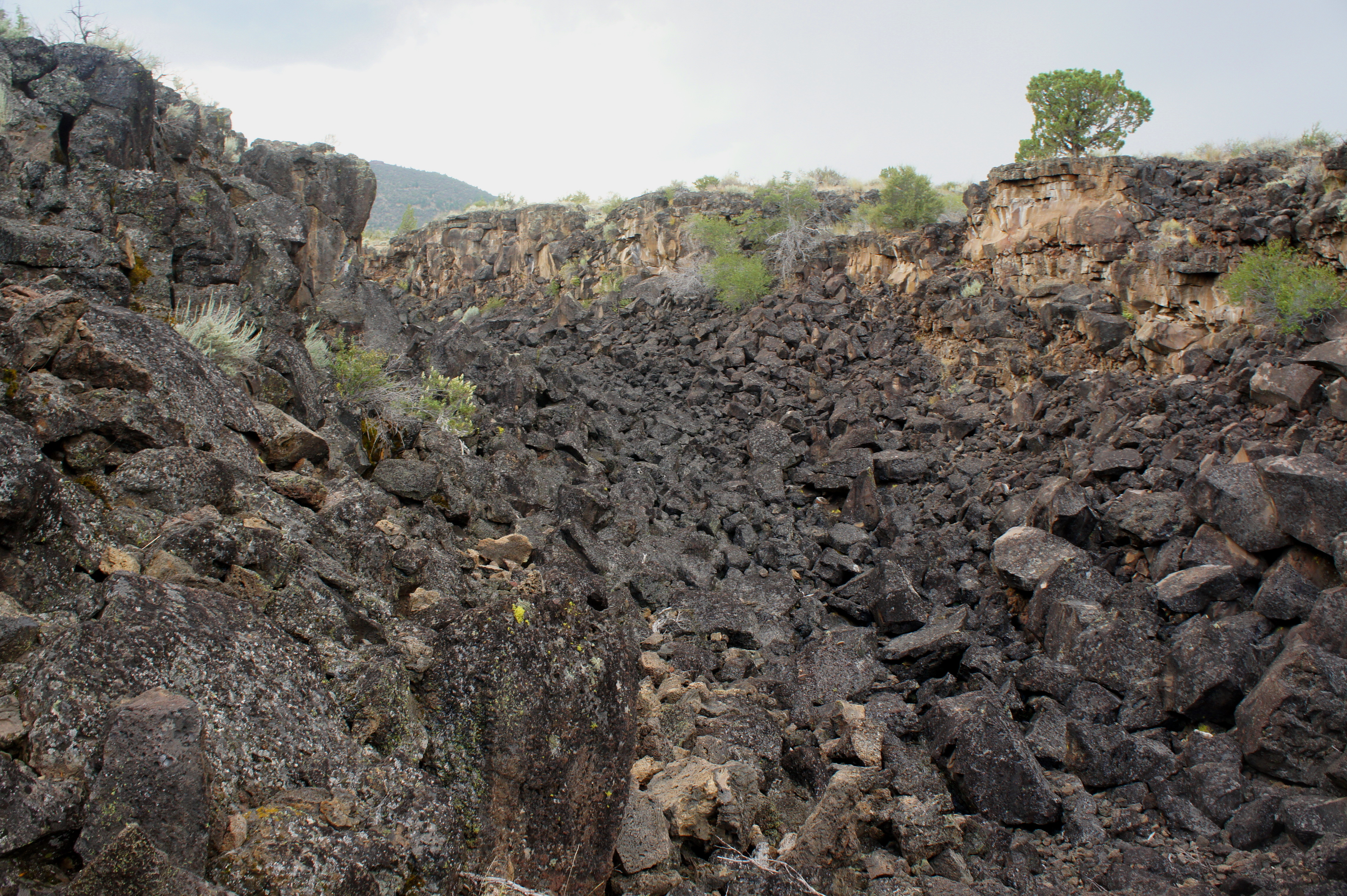 The descent into Skull Cave begins with a staircase heading down into a collapsed section of what was once a “master tube.” This underground channel was the principal highway for lava flowing through the Modoc Crater Lava Tube System; today, the tube is largely a jumble of charcoal-colored basalt, remnants of the old cave roof.
