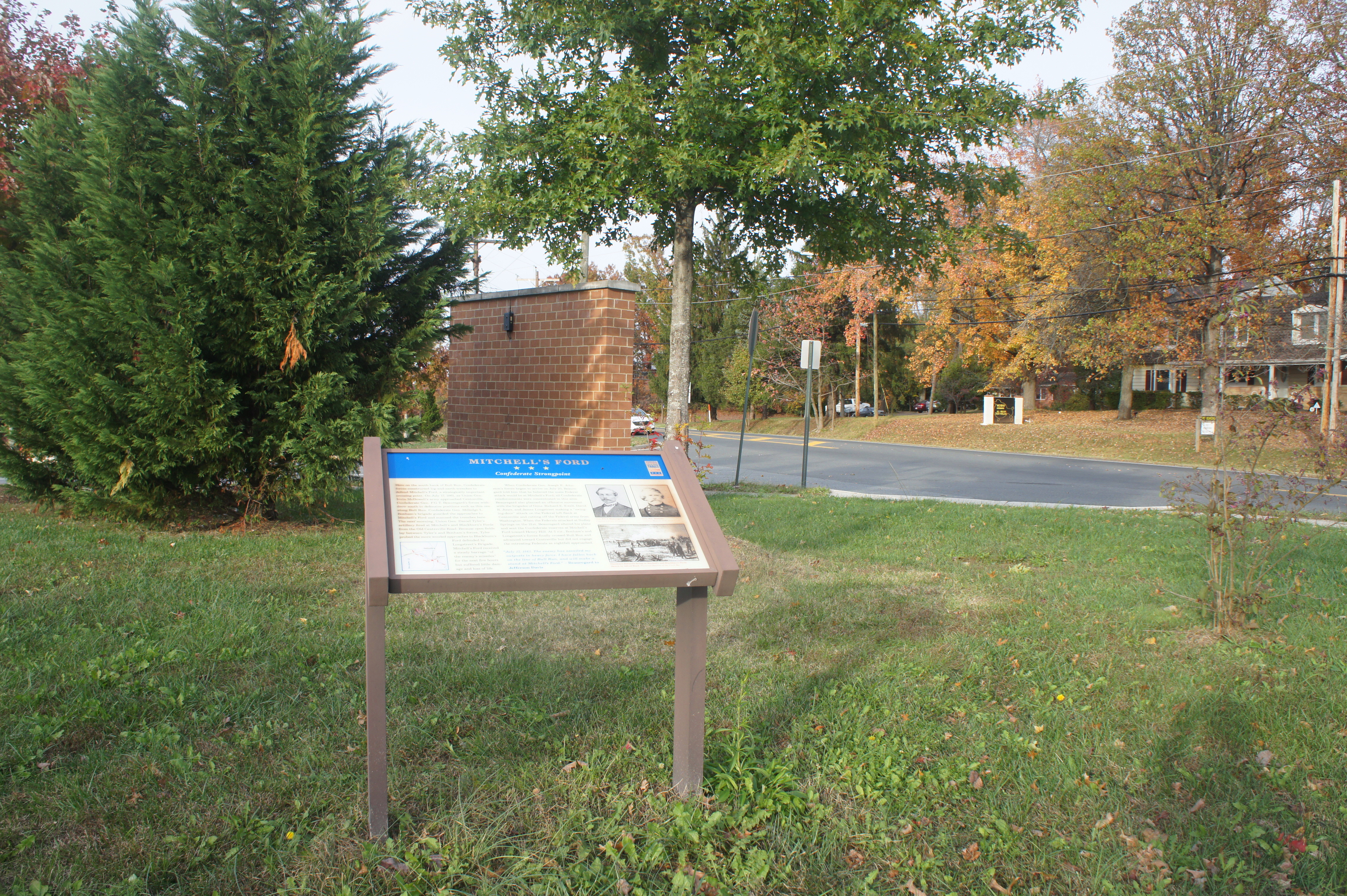 While there are no markers today at Mitchell’s Ford, look for a Civil War Trails sign and wayside exhibit just inside the entrance to the parking lot at Yorkshire Elementary School.