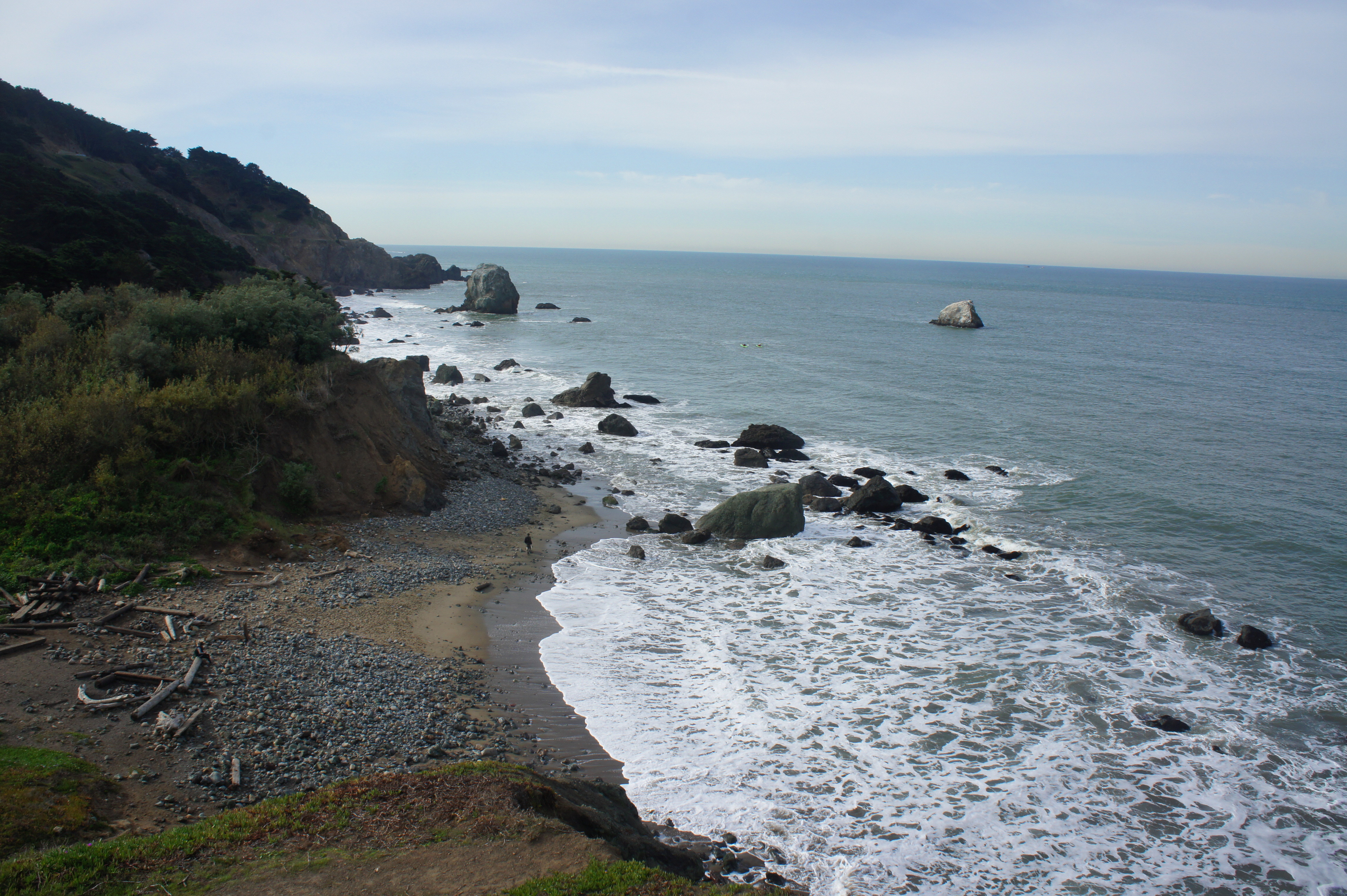 The Eagle’s Point parking area marks the end of this one-way hike. Soak in the views, then return the way you came, link up with the El Camino del Mar Trail heading west, or continue on the Coastal Trail as it hugs the roadside heading east toward China Beach and the Presidio. Allot 1-2 hours for the one-way hike, including the detour to Mile Rock Beach and the Labyrinth.