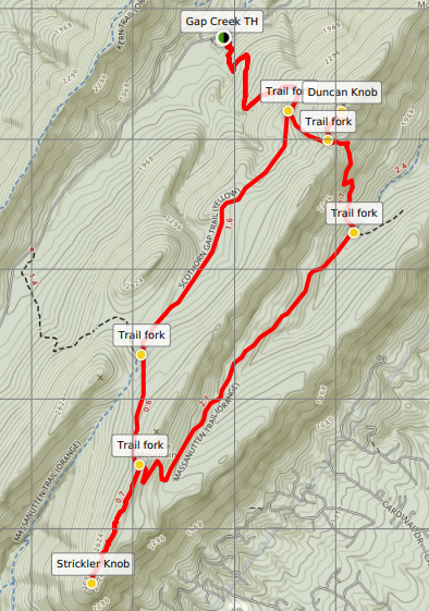 Strickler Knob to Gap Creek Trailhead (4.1 mi.)