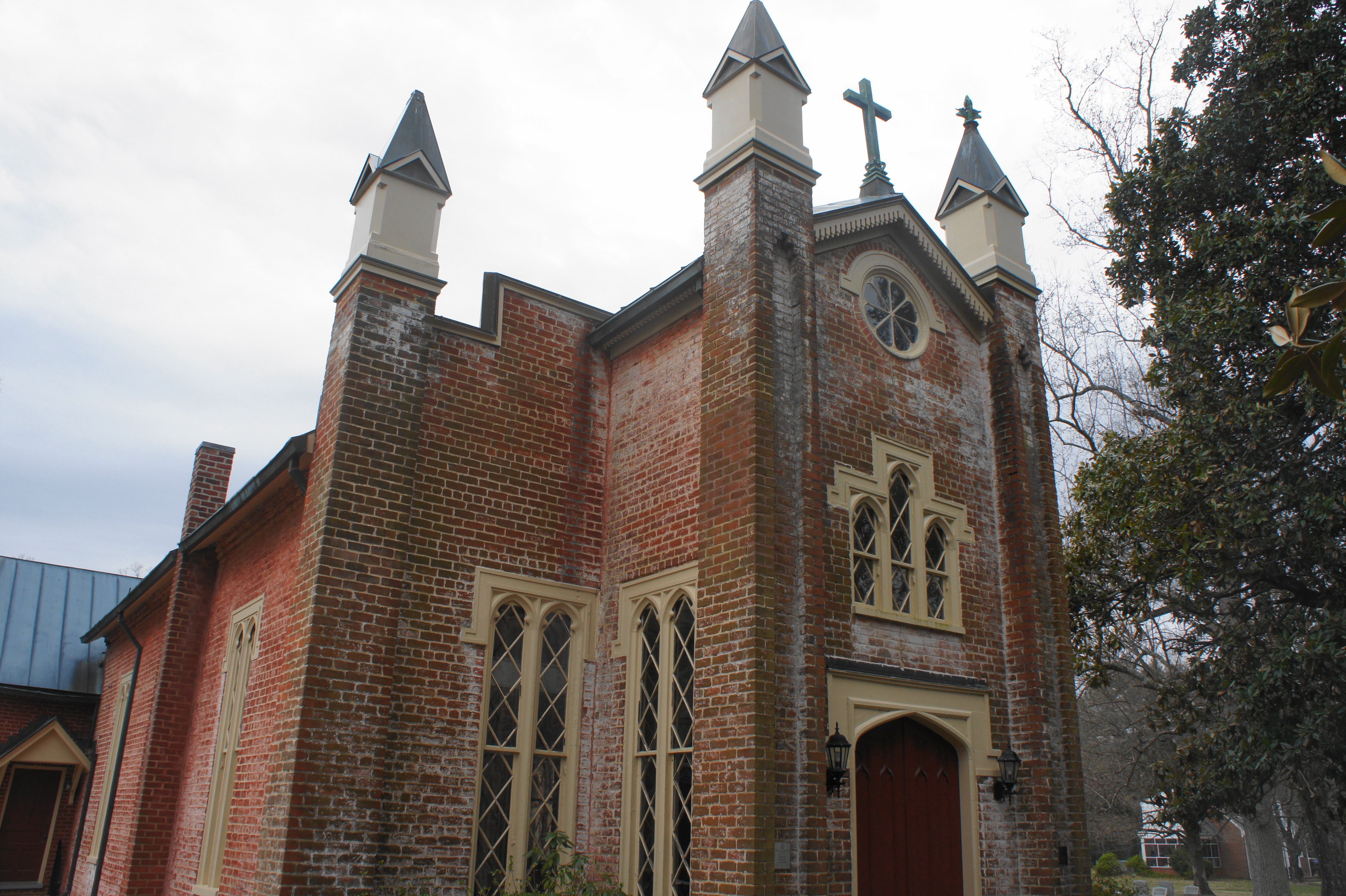 Bearing southeast from Hanover Court House, Stuart’s men encountered several Yankee pickets on June 13 and pursued the 5th U.S. Calvary to its base at Old Church, a small community northeast of Richmond. The outnumbered Federals stood little chance, and their camp was set ablaze by the 1st Virginia Calvary, led by Col. Fitzhugh Lee. A Civil War Trails sign, situated in the parking area for Immanuel Episcopal Church, tells the story of the engagement. The first church here was constructed in 1684, but the present building—remodeled in the Gothic Revival Style—dates to after the war in 1881.