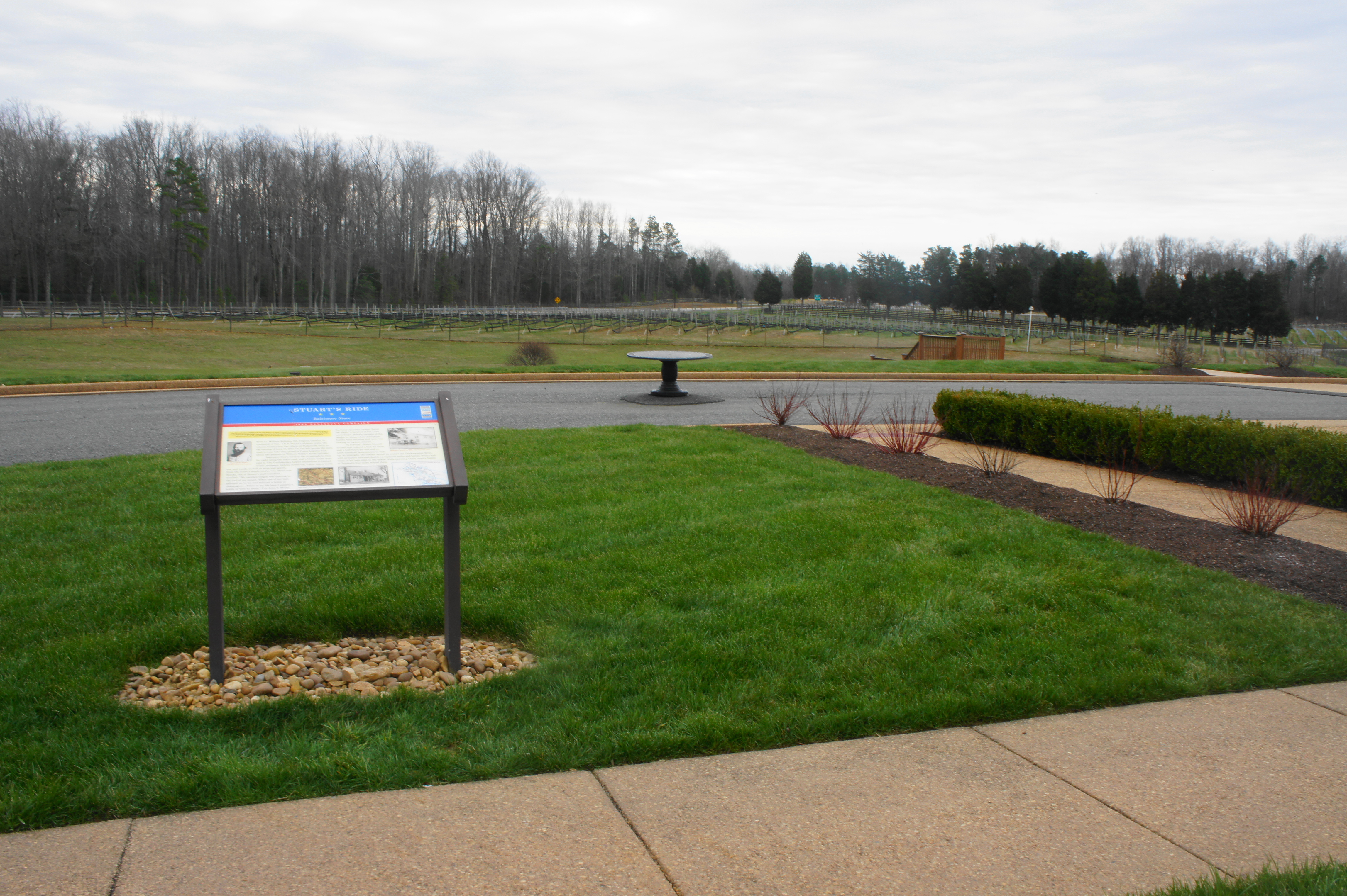 As dusk approached, Stuart’s cavalry strolled through Talleysville, Virginia and raided the ample stocks of the Baltimore Store, manned by a Union sutler. Helping themselves to food and bottles of champagne, Stuart’s men enjoyed a few hours of rest before picking up again at midnight on June 14. Union cavalry, led by Stuart’s father-in-law General Philip St. George Cooke, pursued the Confederate riders, but remained several miles to the north. Baltimore Store was situated near the modern-day property of New Kent Winery, which today hosts a Civil War Trails sign in its parking lot.