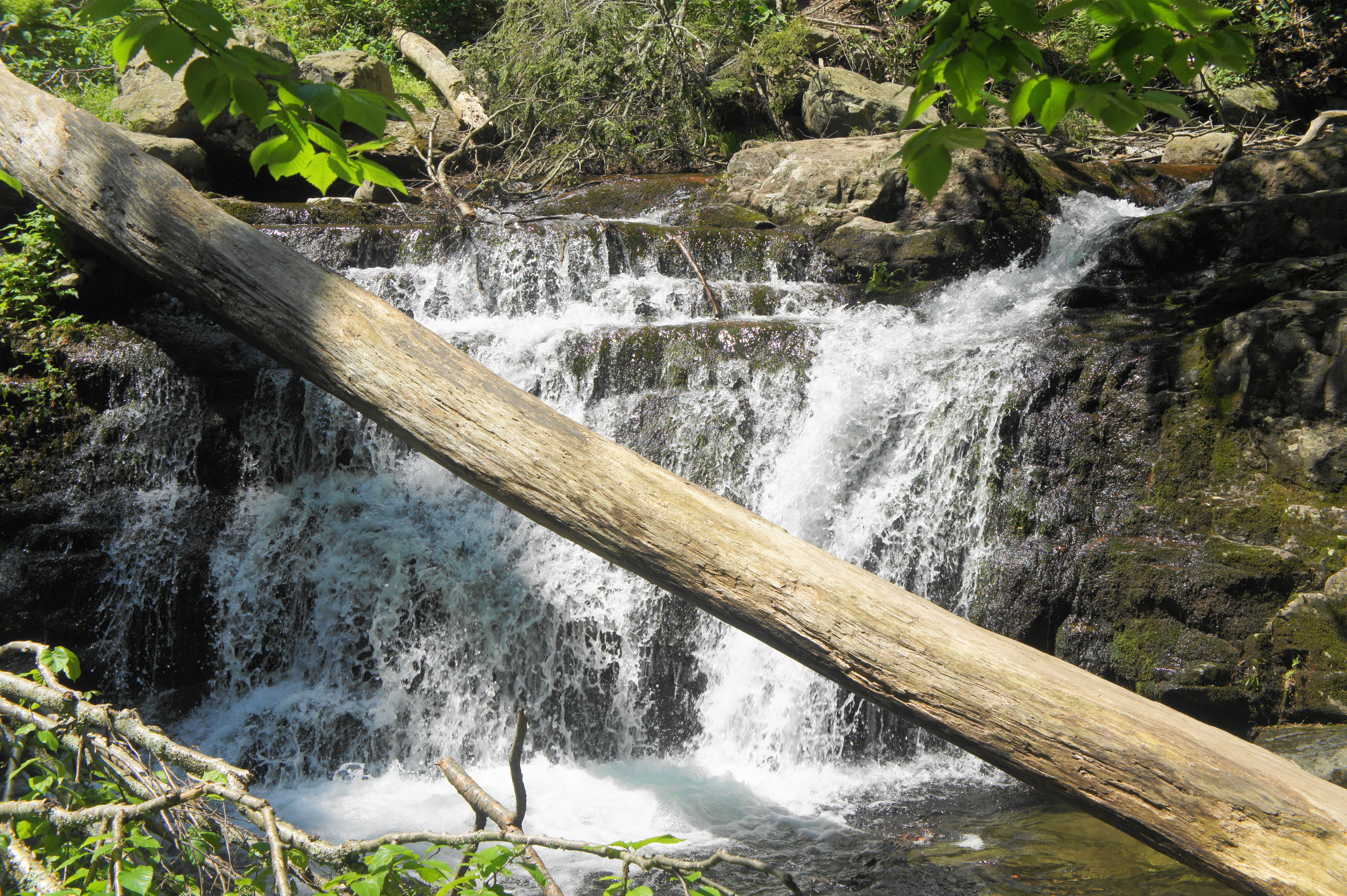 Back on the right bank of the creek, follow the trail as it ascends sharply to a perch overlooking the falls. Continue for about 50 yards until you reach another trail junction. This time bear right on the Blue Dot Trail, which climbs nearly 1,000 feet in the next 1.2 miles.
