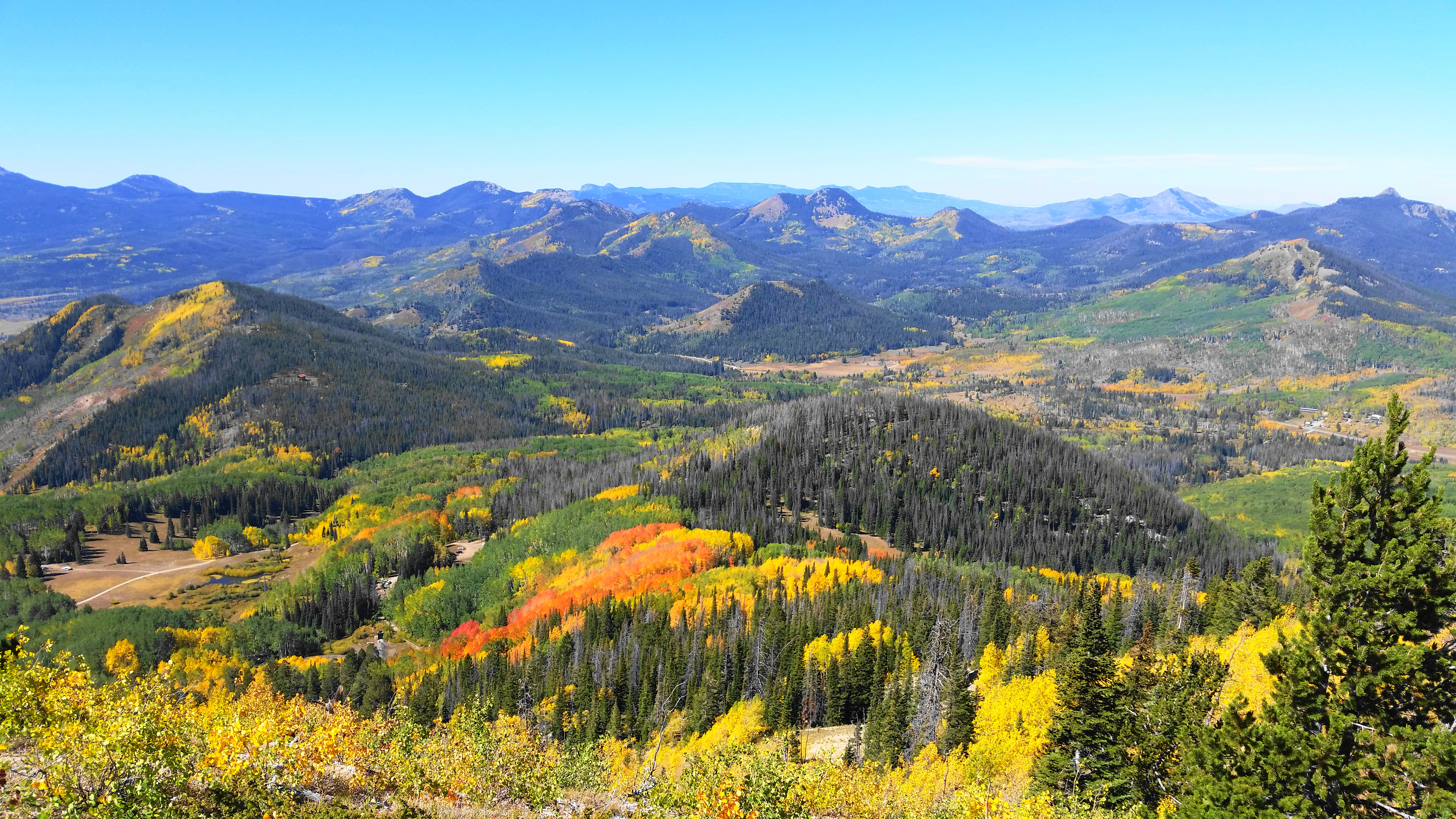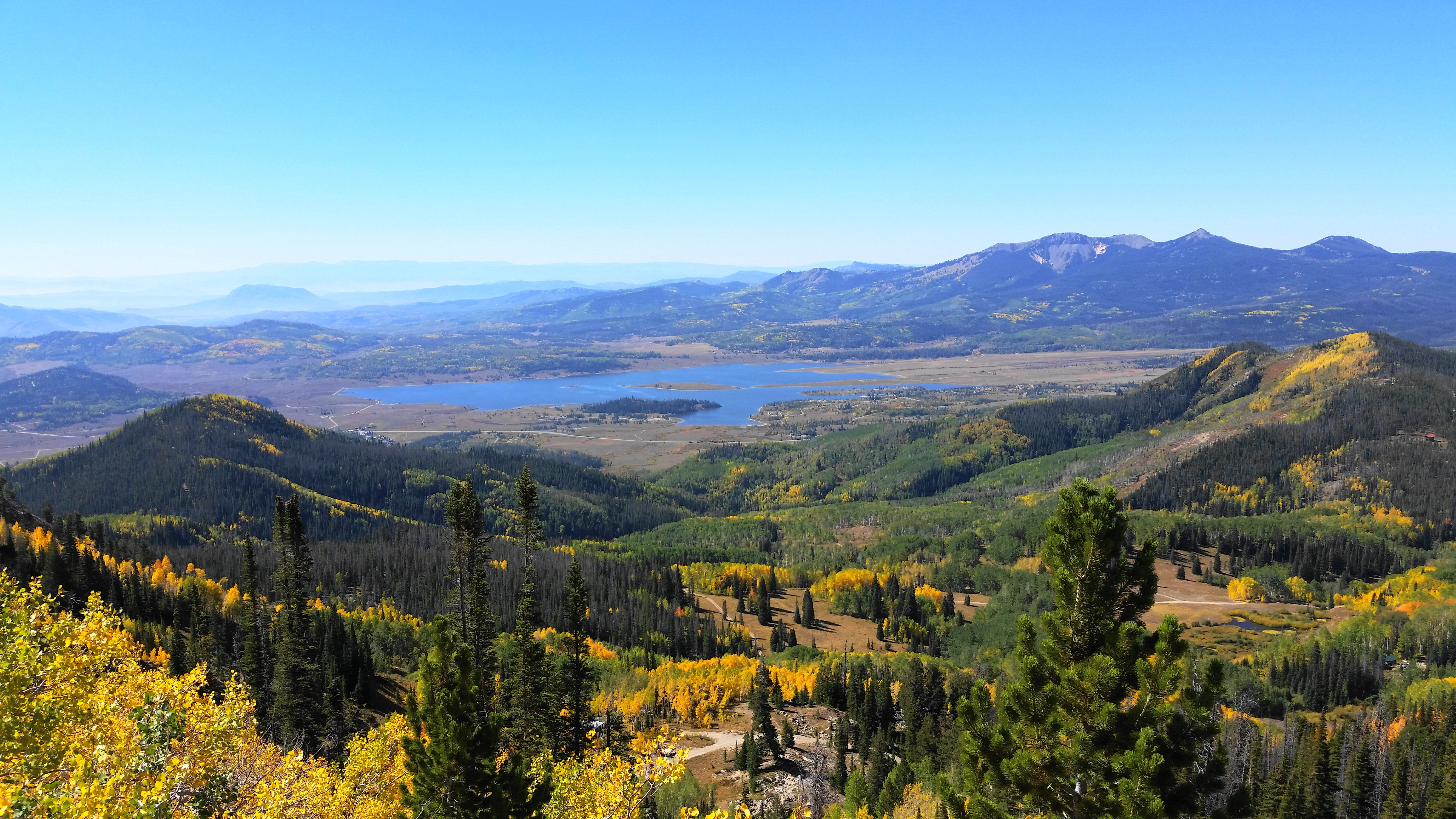 At around 9/10 mile, the trail rounds a right-hand bend and bears southward amid towering pines and, in some months, wildflowers. After a pair of additional switchbacks, the trees give way to an excellent vista, arguably the best of the hike, as it captures both the peak and the unfolding landscape to the south, including glimmering Steamboat Lake and mighty Sand Mountain (10,714’). In fall, visitors are rewarded with a view of fiery streaks of yellows and oranges that light up the forests below.