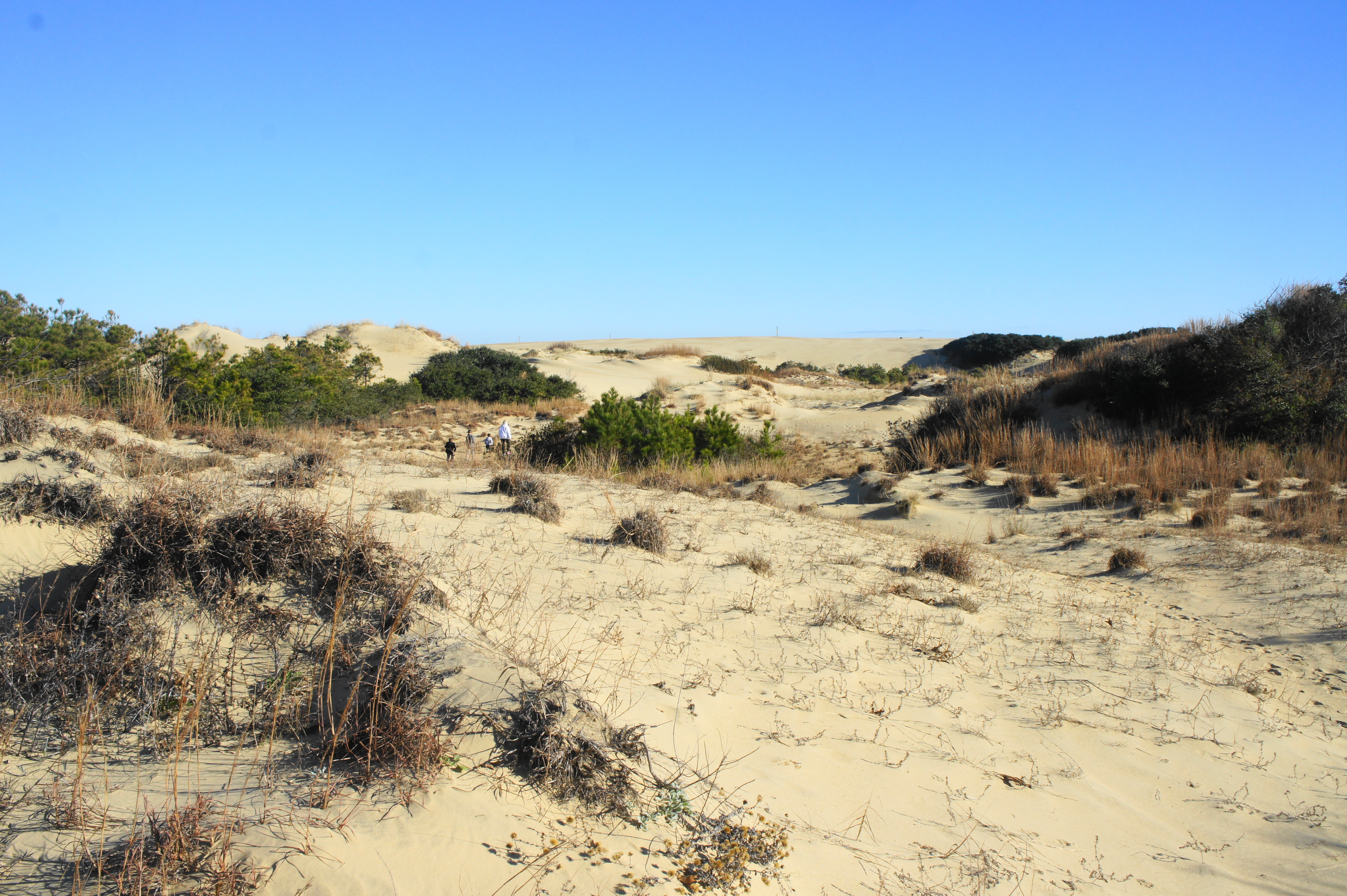 Although lacking the allure of the nearby Tracks in the Sand Trail, the Soundside Nature Trail in North Carolina’s Jockey’s Ridge State Park offers a pleasant and easy stroll through diverse terrain. The dunes of Jockey’s Ridge—the highest on the East Coast—are visible from the path, but the circuit hike largely keeps its distance from them in favor of maritime thicket. Spur trails offer access to the shores of windy Roanoke Sound.