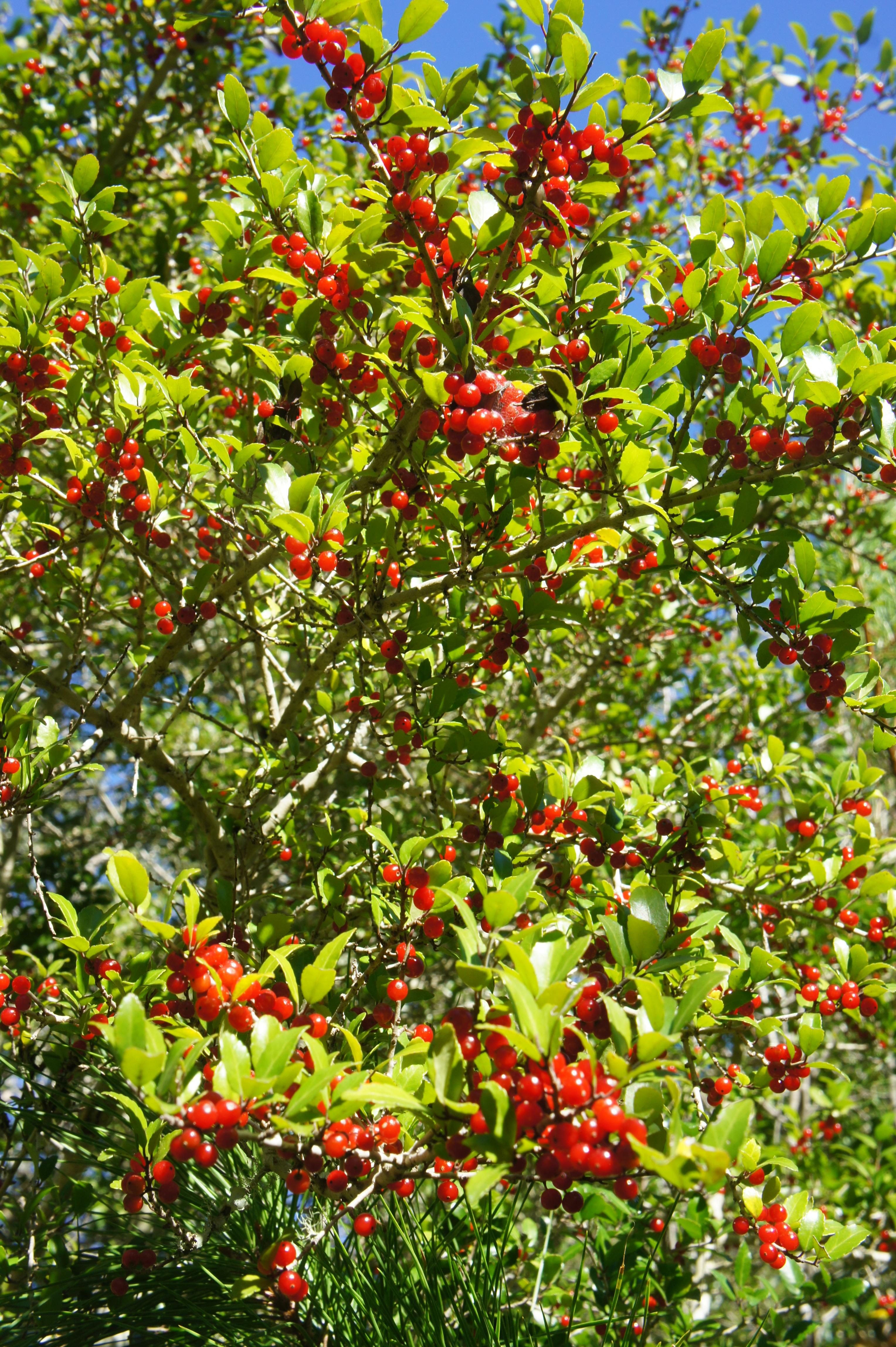 At 4/10 mile, another, smaller swamp appears on the right, and hikers will shortly thereafter pass a colorful yaupon shrub on the left that sports bright red berries. Weaving amid the relatively dense vegetation, the trail returns to the initial fork at just under 6/10 mile. From here, head back the way you came, following the wide path under the canopy of live oaks again to return to the Buxton Woods Picnic Area. All told, the hike covers 7/10 mile and requires about 30-45 minutes to complete.