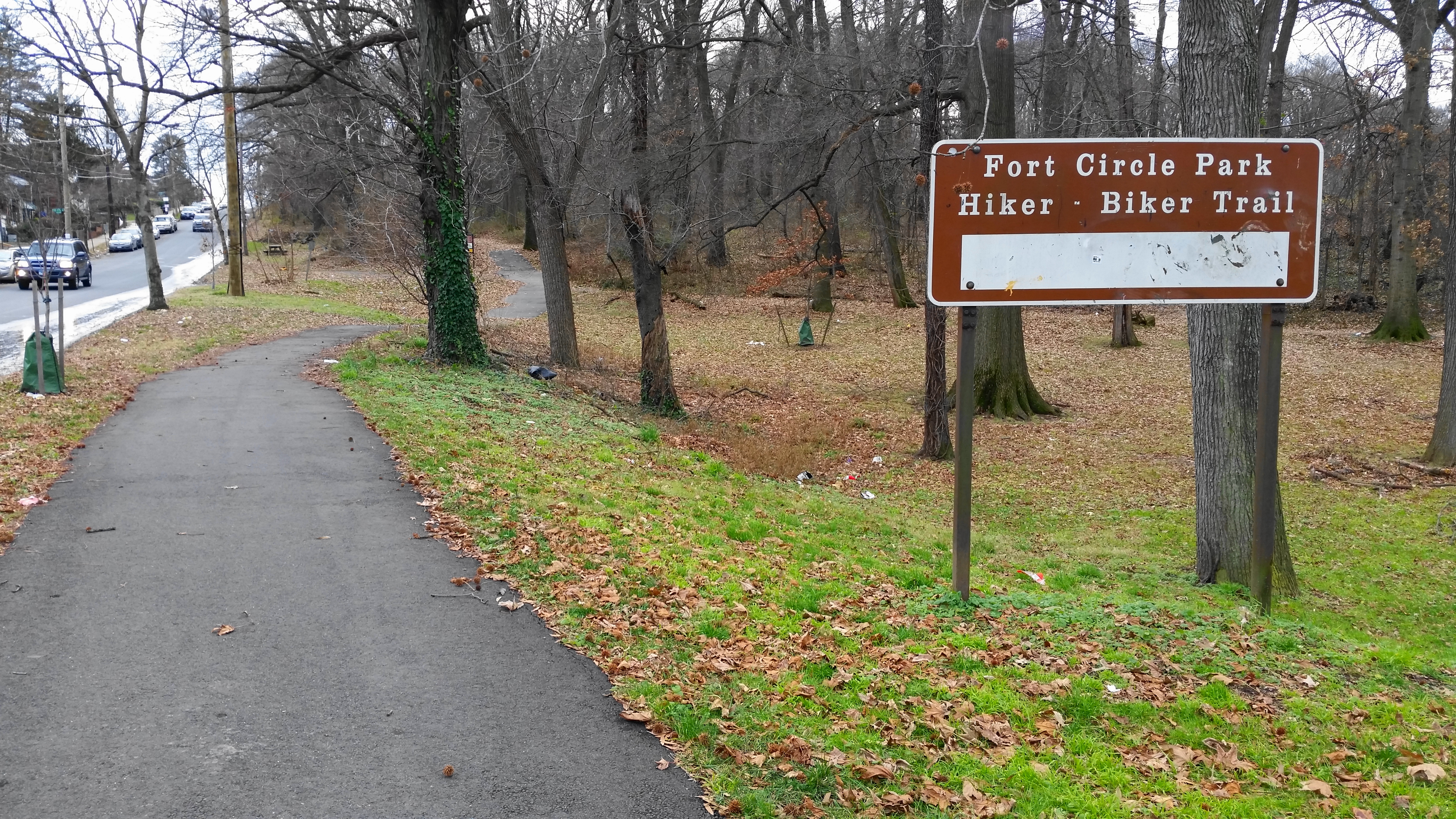 From the Minnesota Avenue Metro (Orange Line), head east out of the station and walk ¼ mile down Grant Street until the intersection with 42nd Street. Here you can pick up the wide, paved Fort Circle Park Hiker-Biker Trail heading south. The path begins as little more than a glorified sidewalk, following 42nd Street southward into Fort Mahan Park.