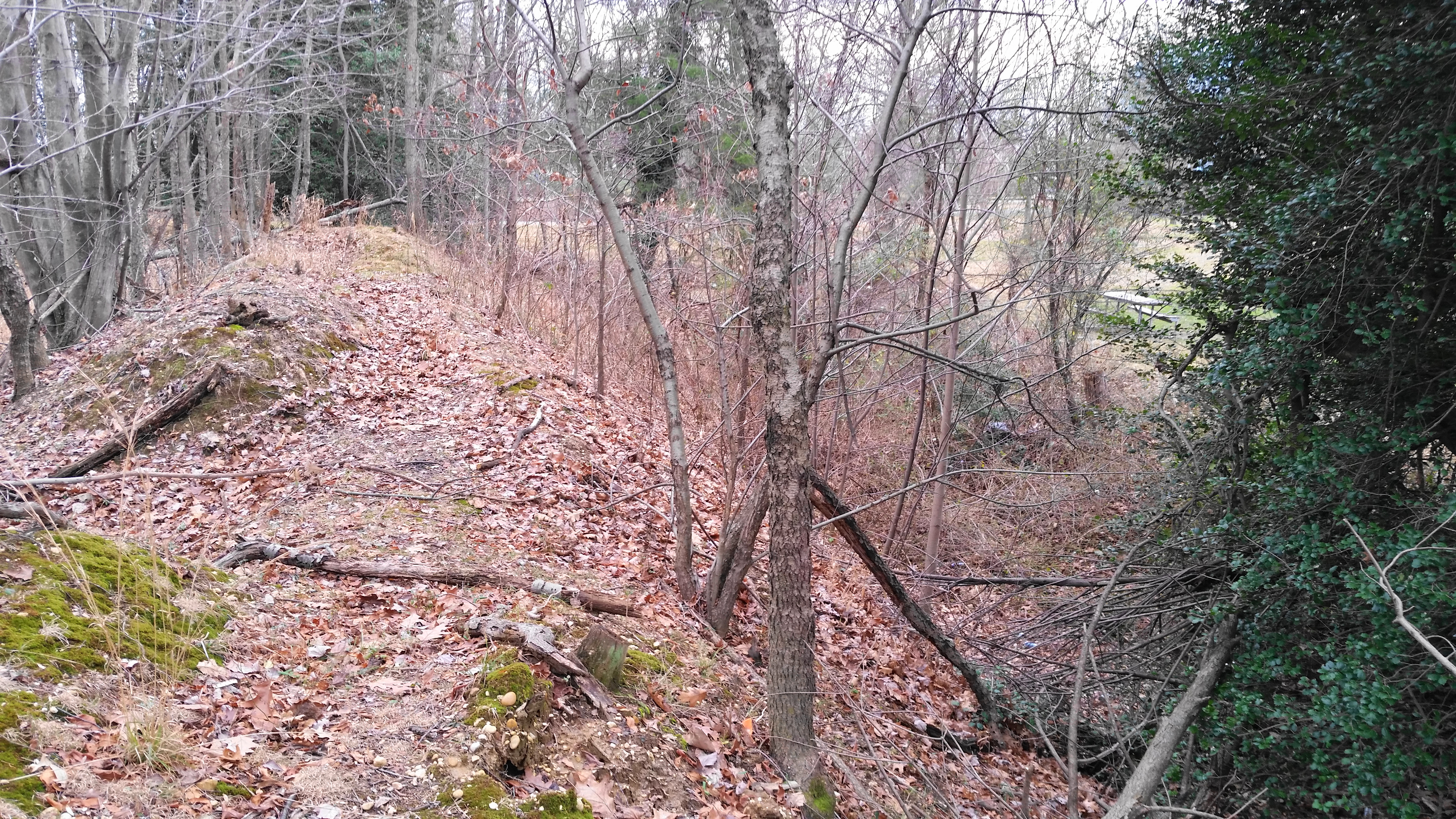 Somewhere around here the trail enters Fort Ricketts Park, the final stage of the hike. Battery Ricketts is situated at roughly the end of the hike, as the trail climbs to merge with an old gravel road that cuts through a sliver of forest. Remains of the earthworks are located directly across the road. This battery was constructed earlier in the war as well to cover a ravine that could not be defended by nearby Fort Stanton. Like most of the other forts surrounding Washington, the fort was decommissioned after the war in 1865.